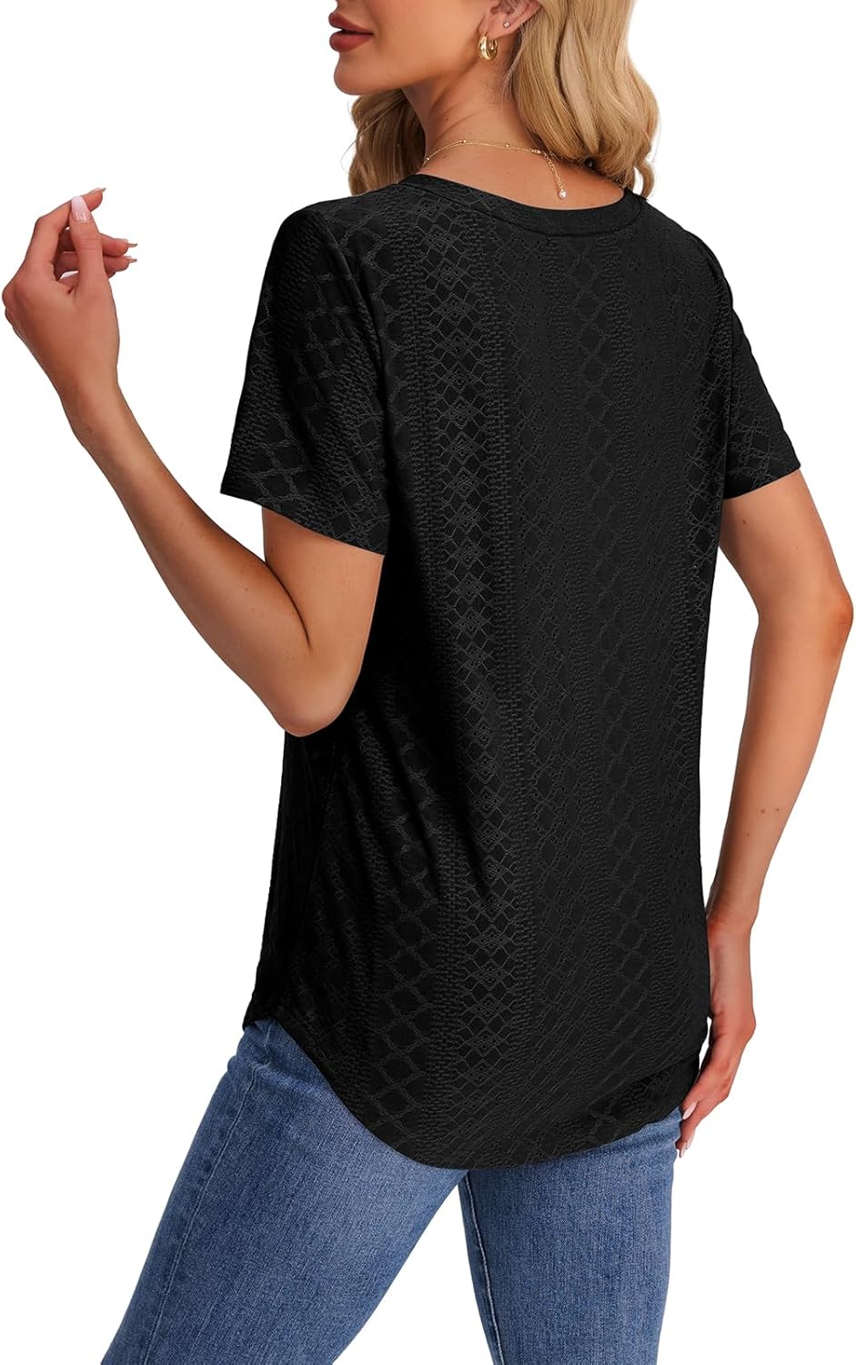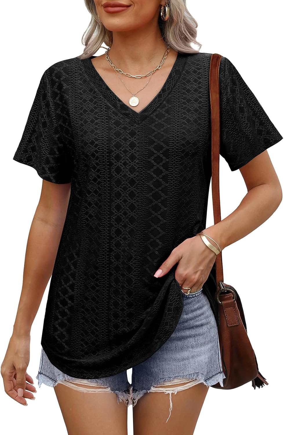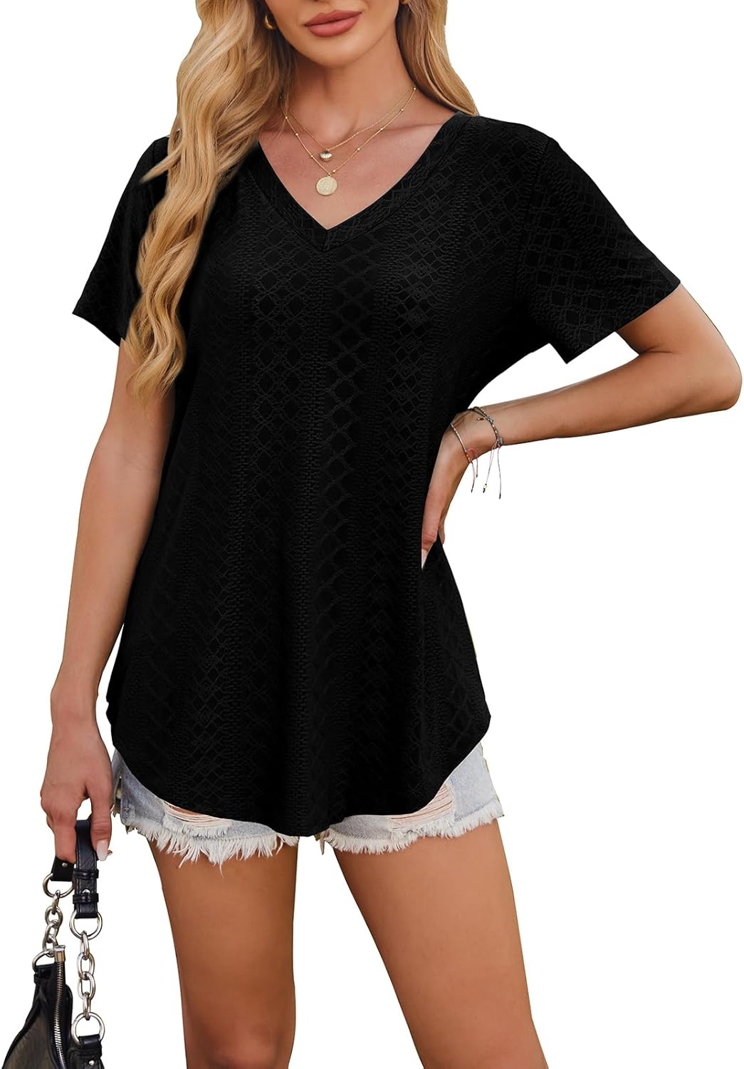 ✦Design: Tshirts for women with curved hem, v neck and loose fit. It's flattering and flowy to hide the stomach which suitable for any body shape, available in floral and solid colors