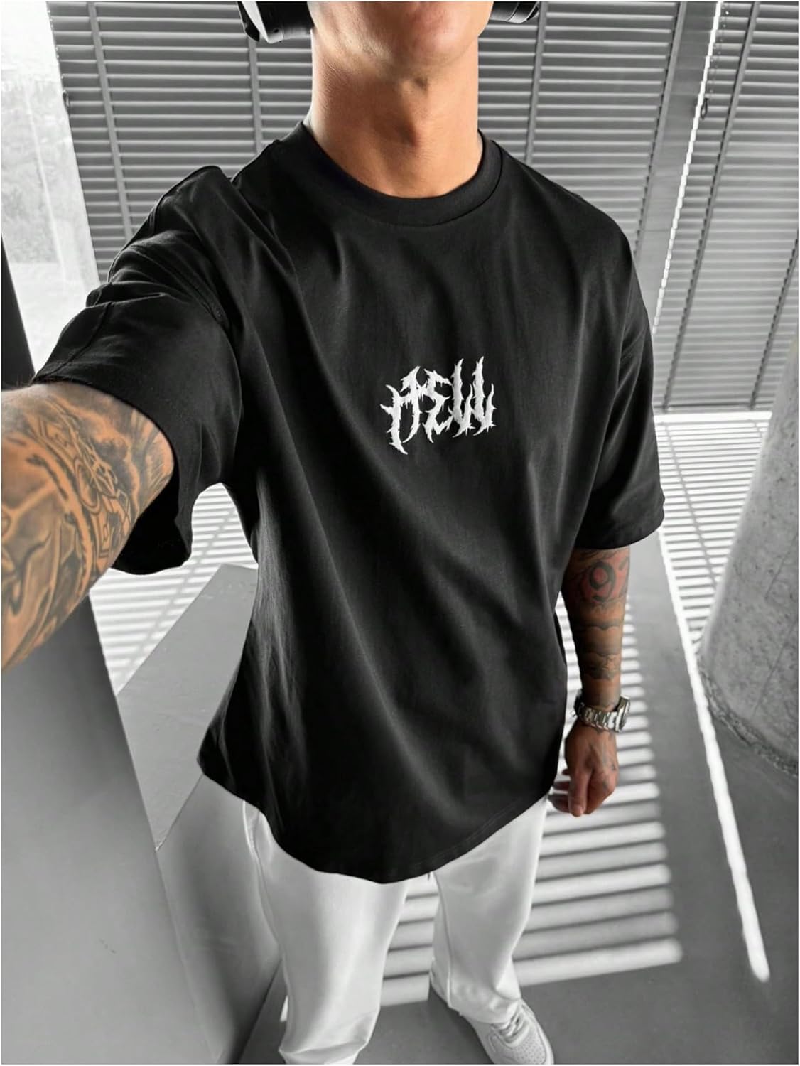 Feature: Men's graphic tees, featuring drop shoulder, round neck, short sleeve, loose fit, pair with jeans or cargo pants. Add boots or sneakers for a cool look