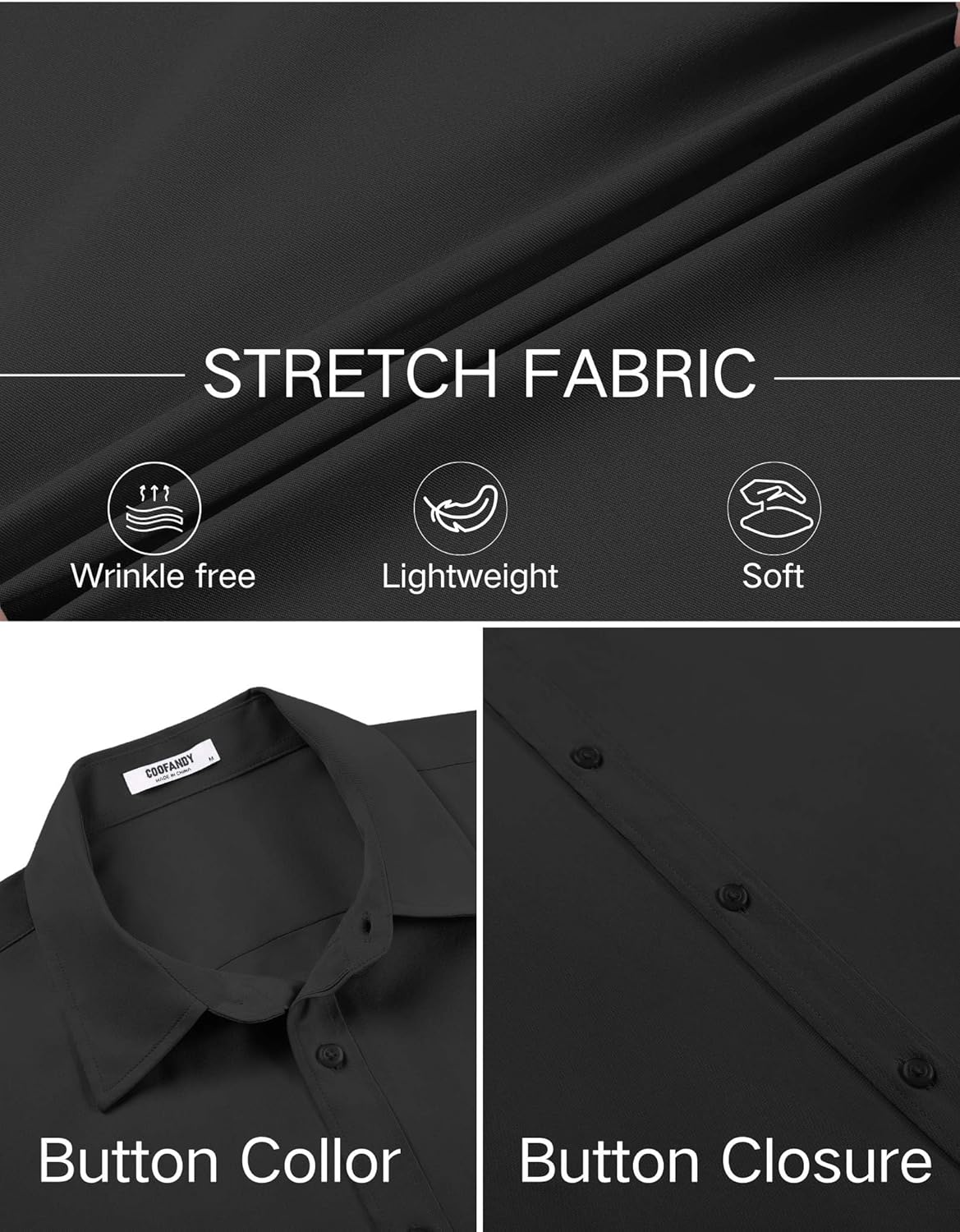 Fabric - Crafted from a premium blend, mens dress shirt offers elasticity and comfort. Lightweight, breathable, and silky smooth, it ensures you stay cool and comfortable all day.