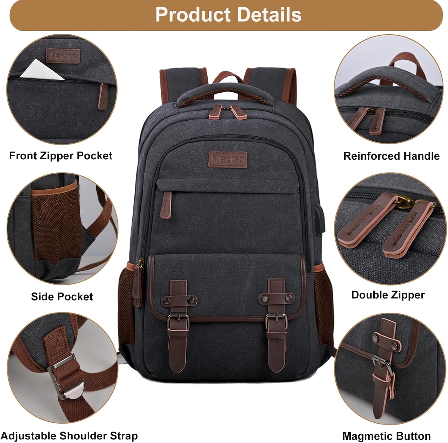 YANHUAKEKECanvas Travel Laptop Backpack for Men Women, business Work Rucksack College School Computer Bag Fits 15.6 Inch Laptop, Bookbag with USB Charging Port (Black)4.6 out of 5 stars34 34 customer raitings $37.99$3799