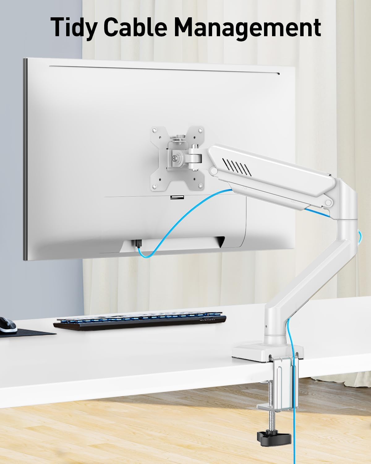 Perfect Space Saver: Free up valuable desk space with this vesa monitor mount. Comes with the cable management parts, keeping your workspace tidy and organized