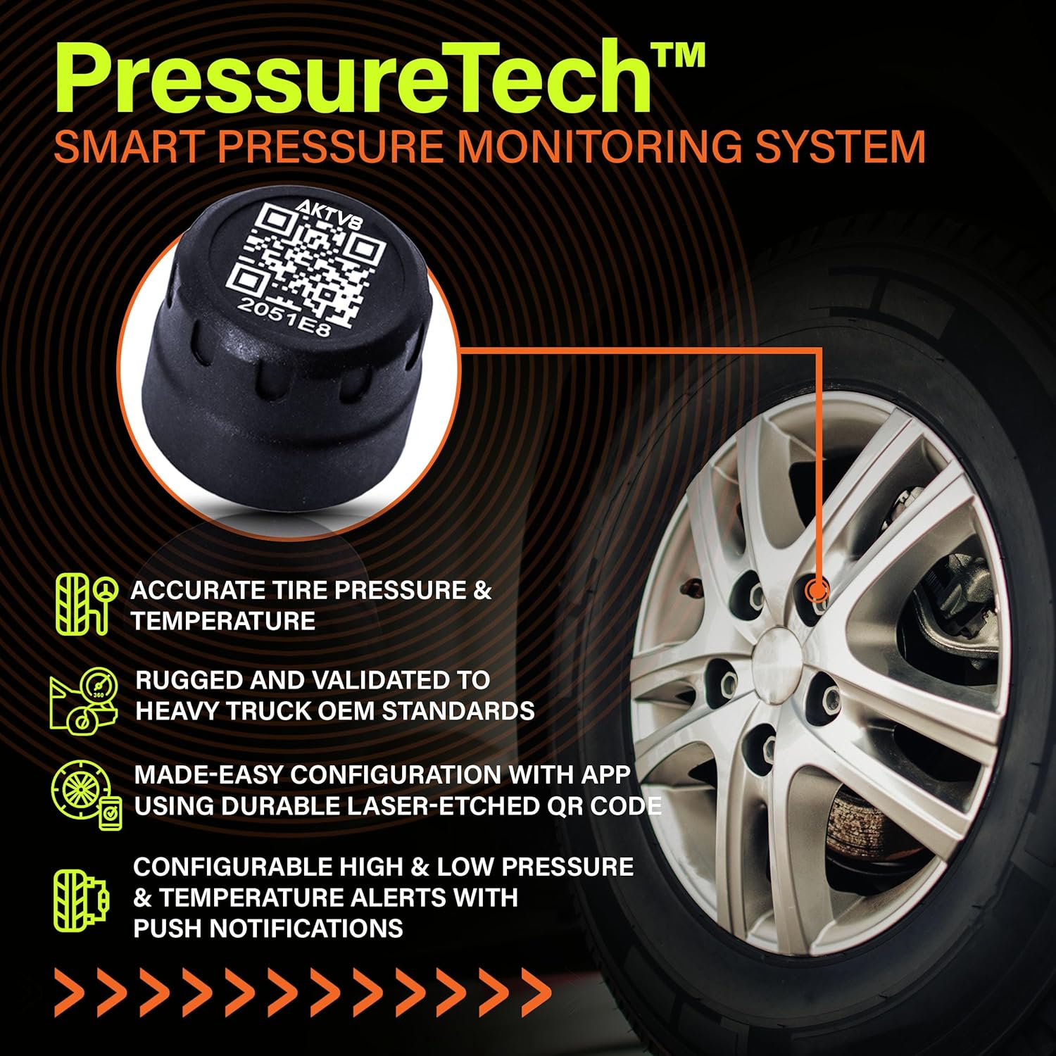 PressureTech Wireless Tire Pressure Monitoring System - TPMS Sensors for Automobiles, Motorcycles, Powersport Vehicles, RV...