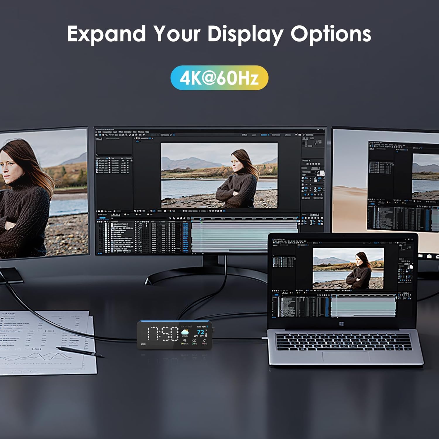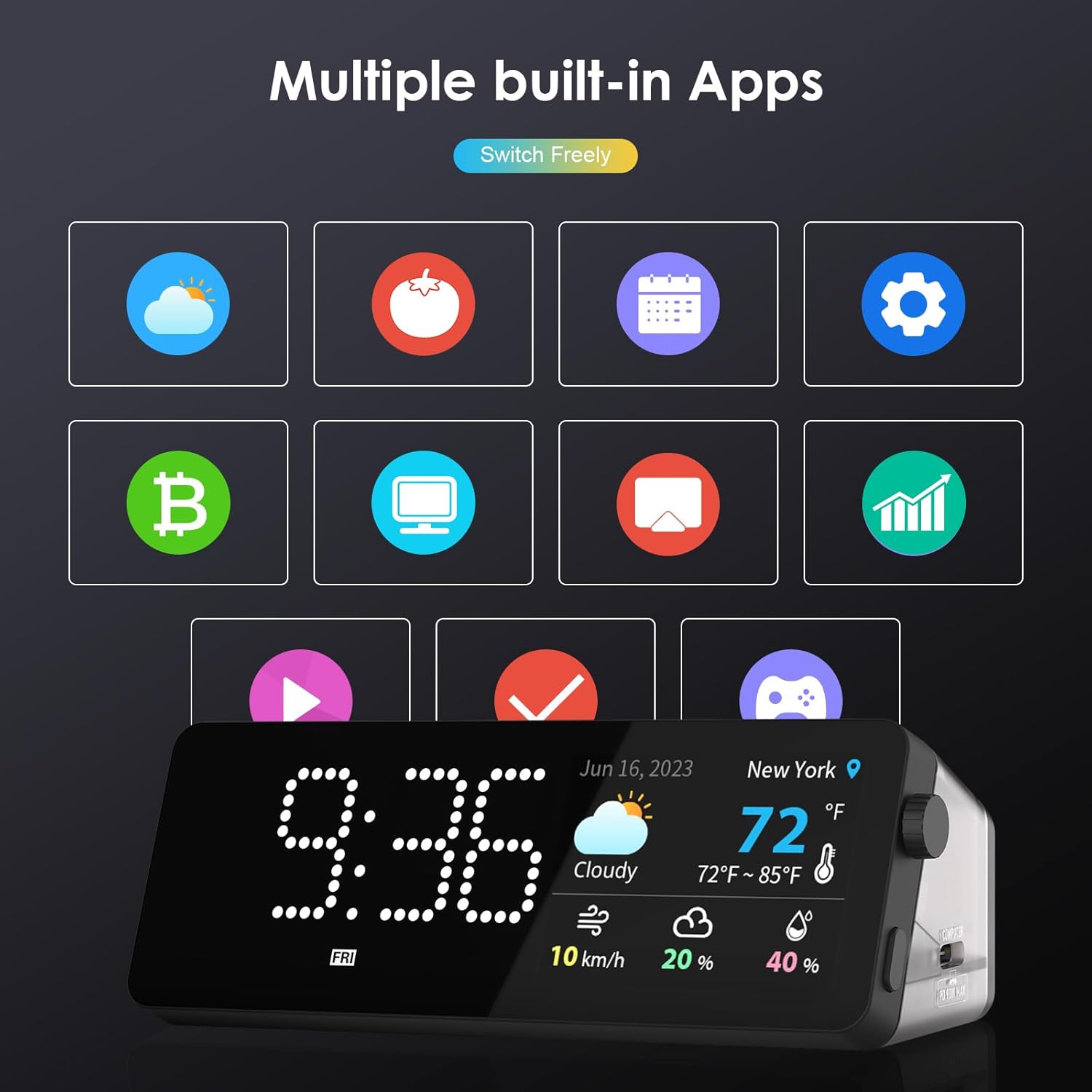All in one laptop docking stations: Mini Dock usb c docking station has multiple built-in Apps, making it easy to switch real-time apps with one switch, providing you with greater flexibility and efficiency, and keeping everything under control