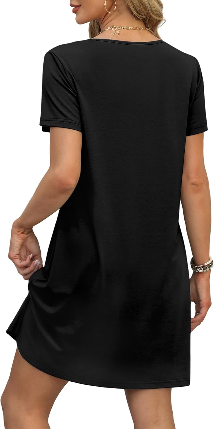OFEEFAN Summer Dresses for Women 2025 Loose V Neck Short Sleeve Casual T Shirt Dress Sundresses Swimsuit Coverup with Pockets