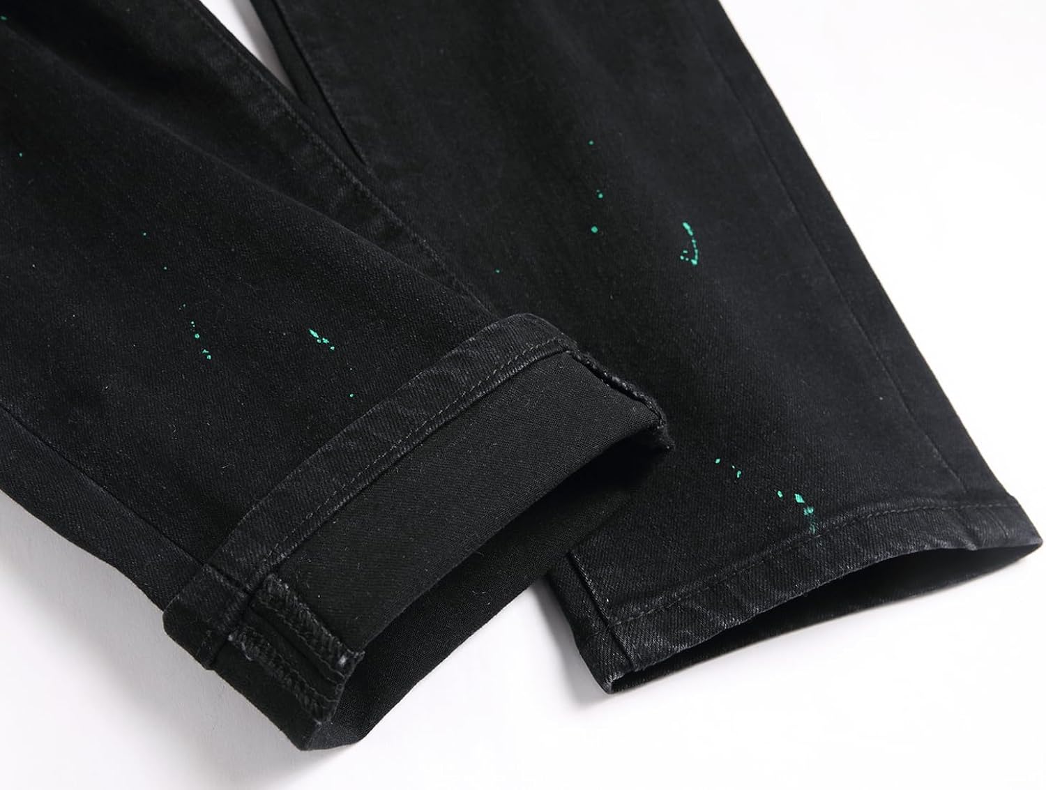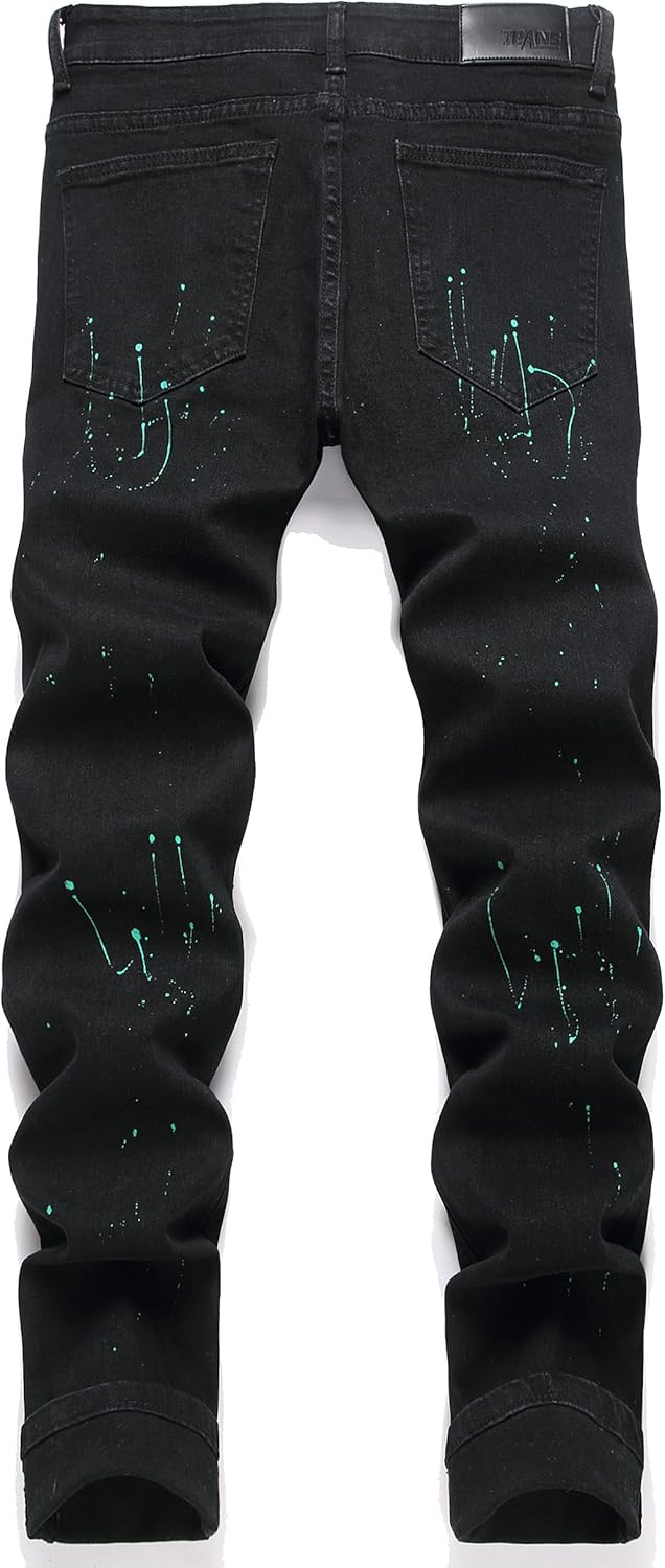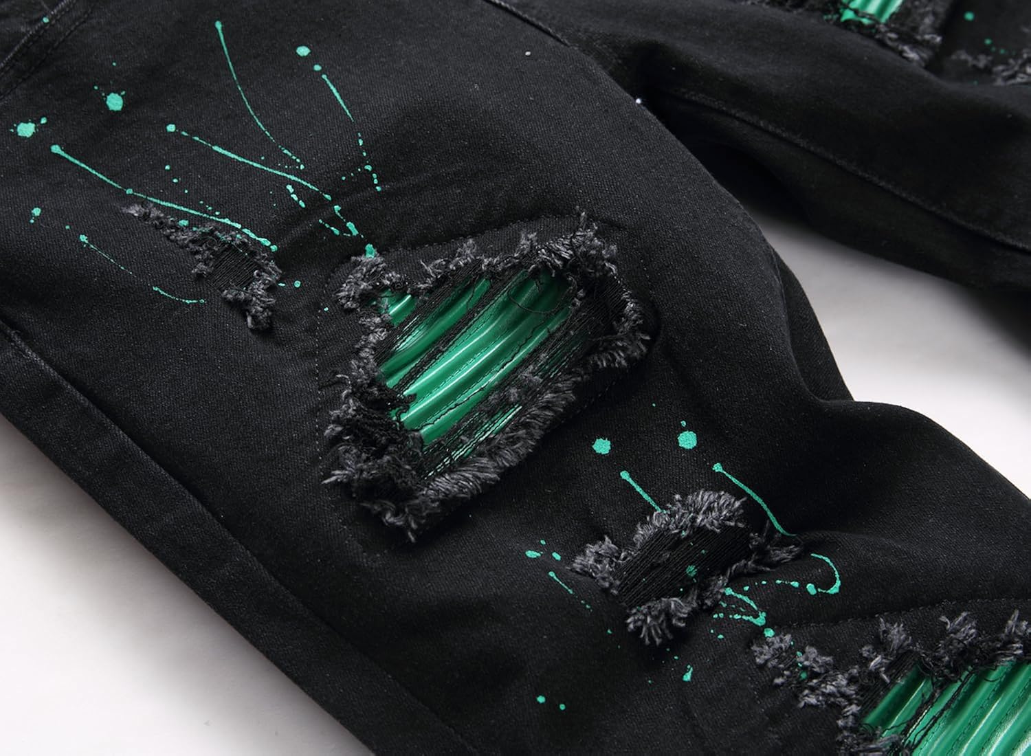 GHYYHG Men's Ripped Patch Elastic Jeans Fashion Slim Fit Regular Denim Pants