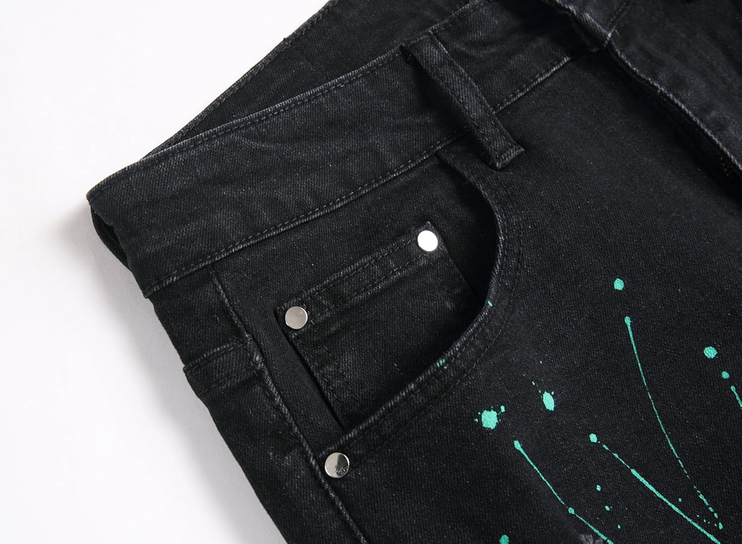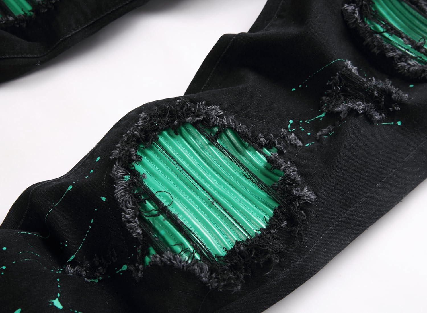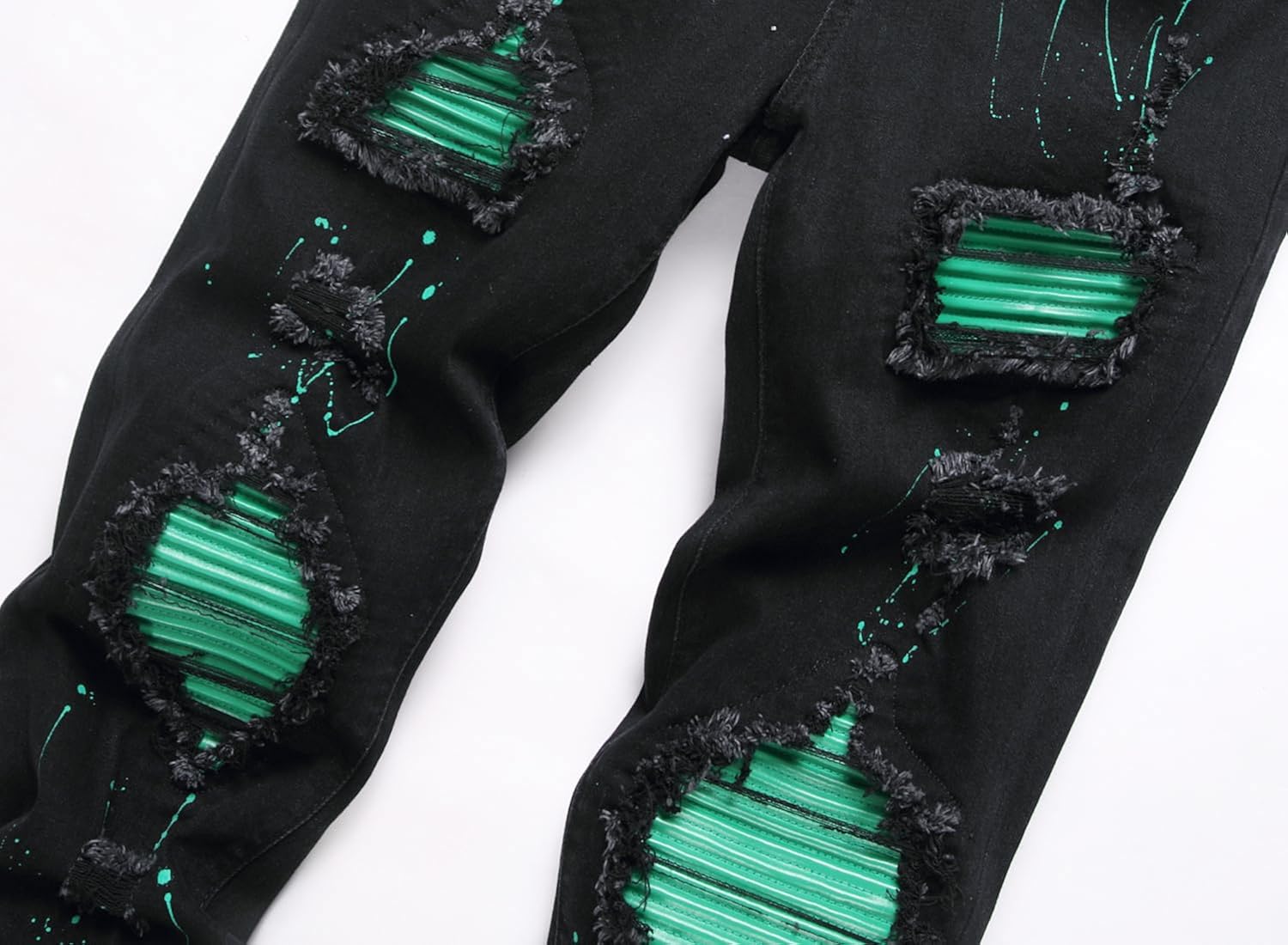 GHYYHG Men's Ripped Patch Elastic Jeans Fashion Slim Fit Regular Denim Pants
