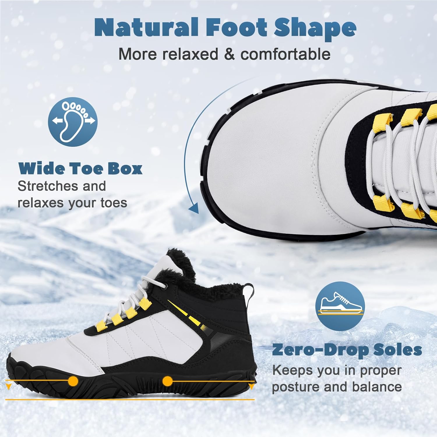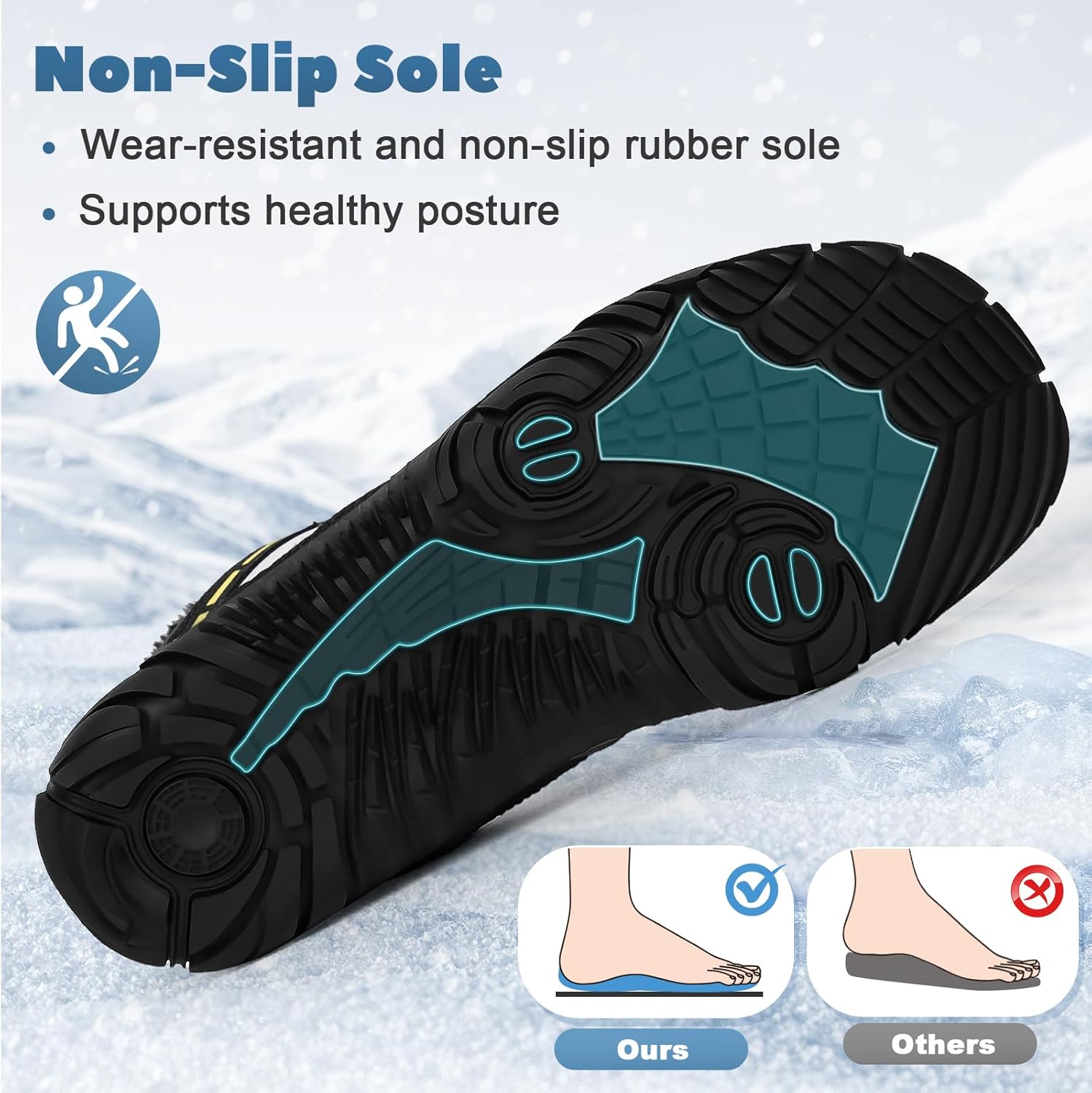 ❄️??【Flexible and Durable Soles】The soft, bend-resistant soles of these hike winter footwear barefoot boots are designed to withstand cold temperatures without cracking. They can be twisted and bent without deforming, allowing for easy and comfortable movement in any direction.