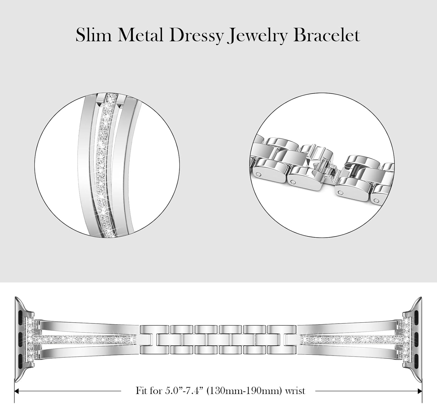 Slim Apple Watch Bands for Women: This dressy apple watch strap is made from durable stainless steel with a brushed silver finish. The thin apple watch bands for women adds a feminine appeal to your wrist. The sparky diamonds lining in the middle are hand-inlaid and firmly embedded to ensure each sparkle shines evermore.