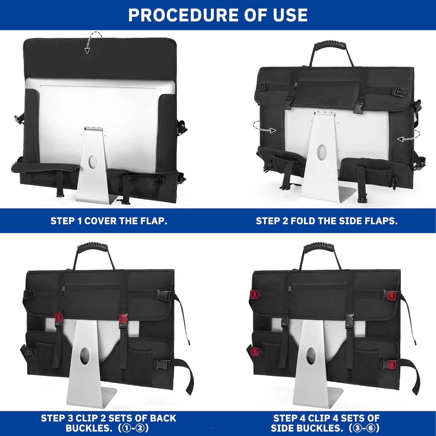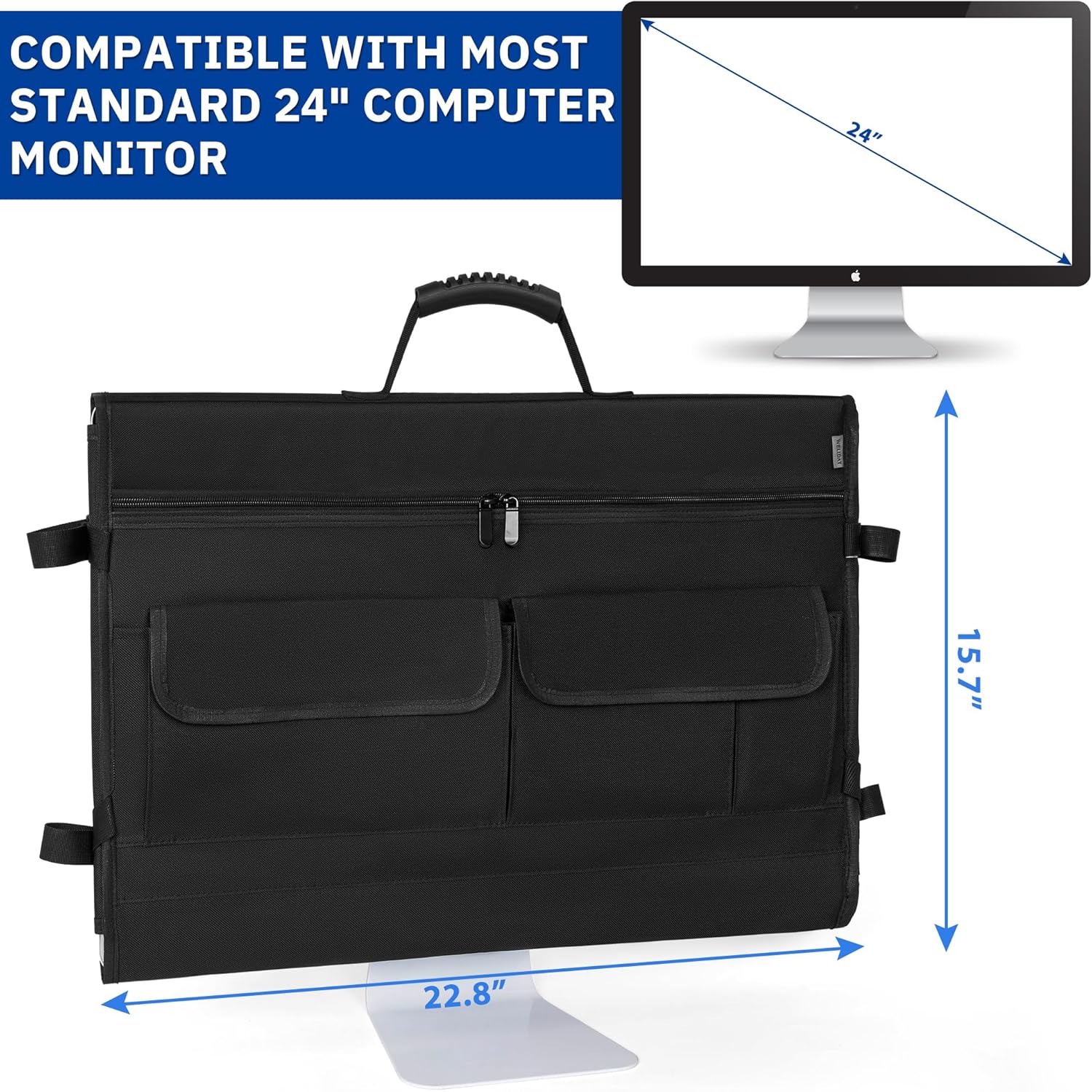 【Multiple pockets and large space】The monitor bag has 6 extra pockets, which can store all your computer accessories, such as keyboard, mouse, trackpad, USB power adapter, charging cable, headphones, mouse pad, power cord, external Hard drives, CD-ROM drives, etc