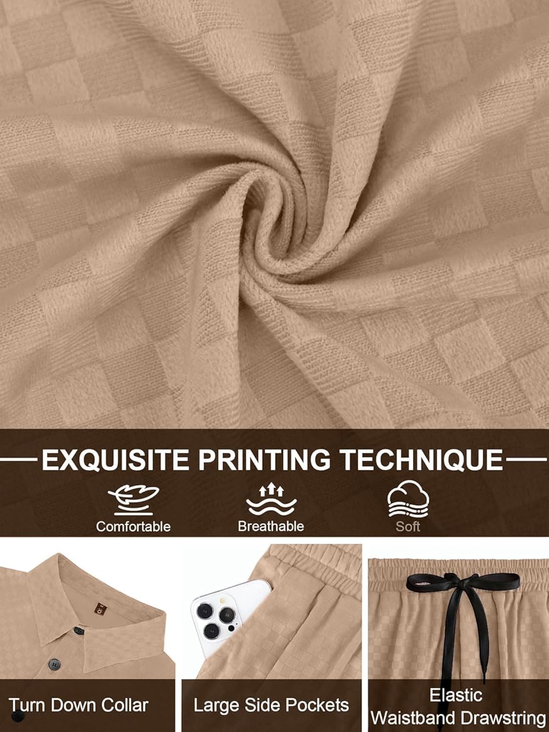 Material: Mens 2 piece outfits summer is made from checkerboard velvet fabrics, mens short sets 2 piece outfits has a slight stretch, soft, comfortable, breathable, and skin-friendly.