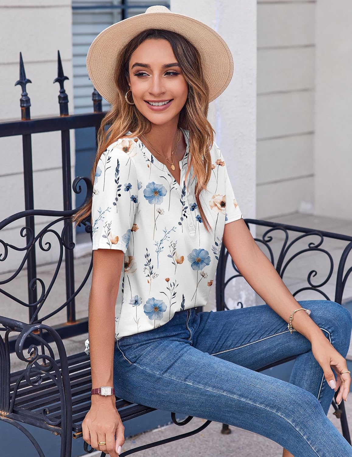 Features: Short sleeve tops, v neck henley tshirts, tunic tops for leggings, flowy floral blouses, solid color shirts, cute boho tops, 2025 fashion summer spring tops, business work top, business casual clothes, basic tee shirt, clothing
