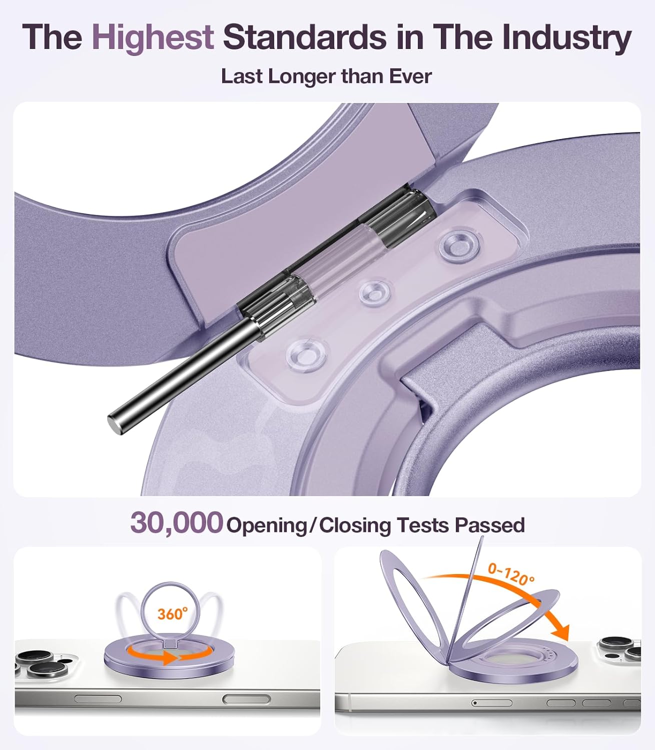 Larger Ring, Much More Angles for Standing: This magnetic ring stand can be positioned freely at the best viewing angle for your phone; It's perfect to use as a phone stand when watching videos, taking selfies, texting, or just keeping your phone on the desk. The collapsible design also allows it to easily fit in your pocket when not in use