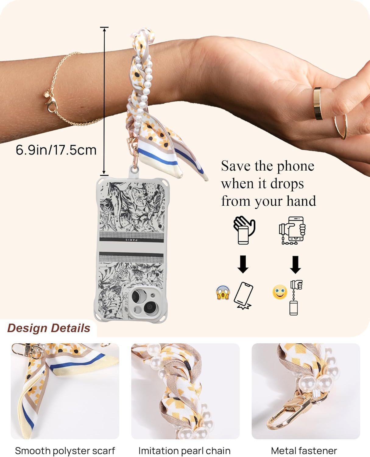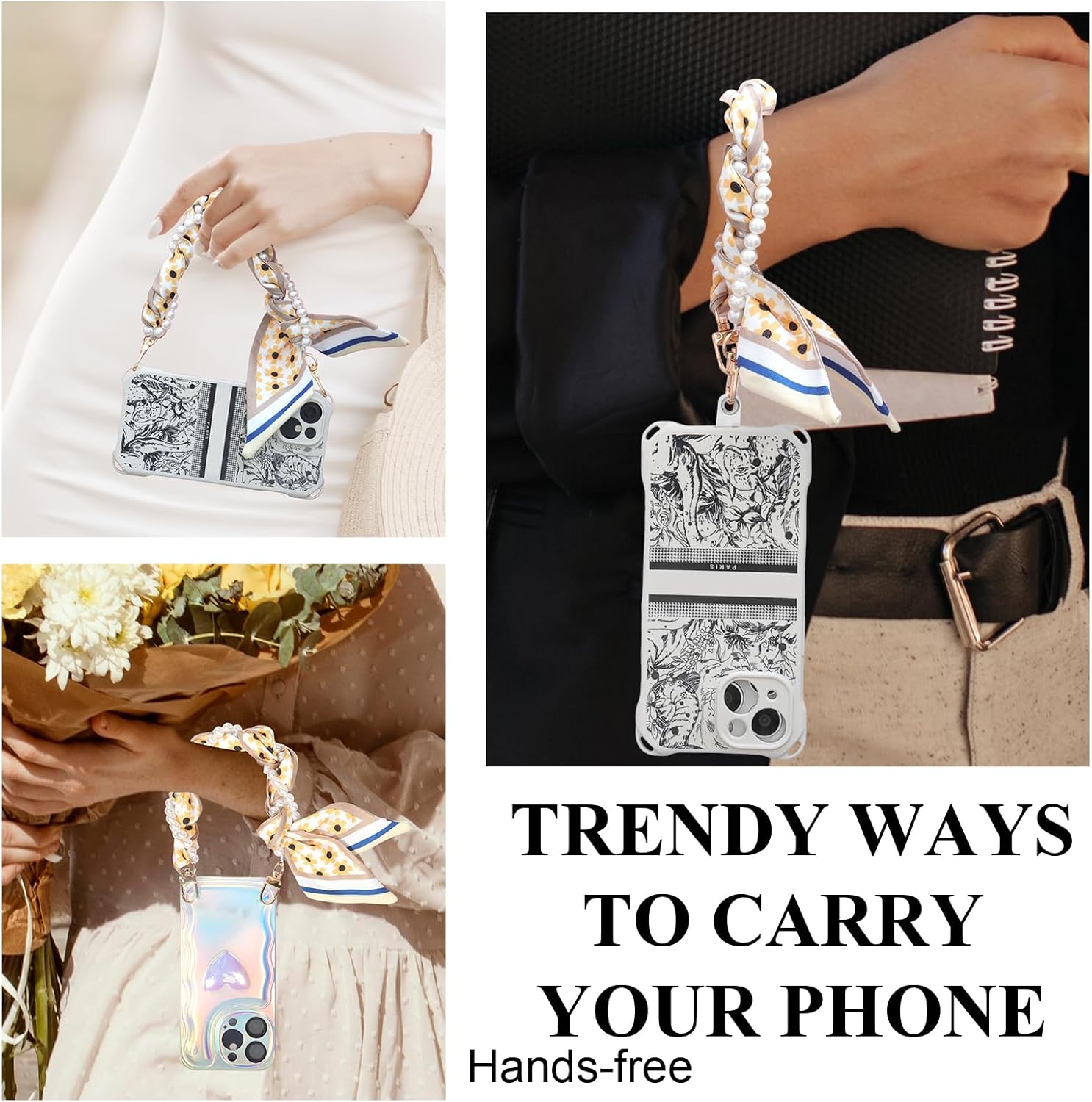 XODITO Scarf Phone Strap with Durable Metal Chain Hands-free Phone Wrist Strap Anti-drop iphone Wristlet