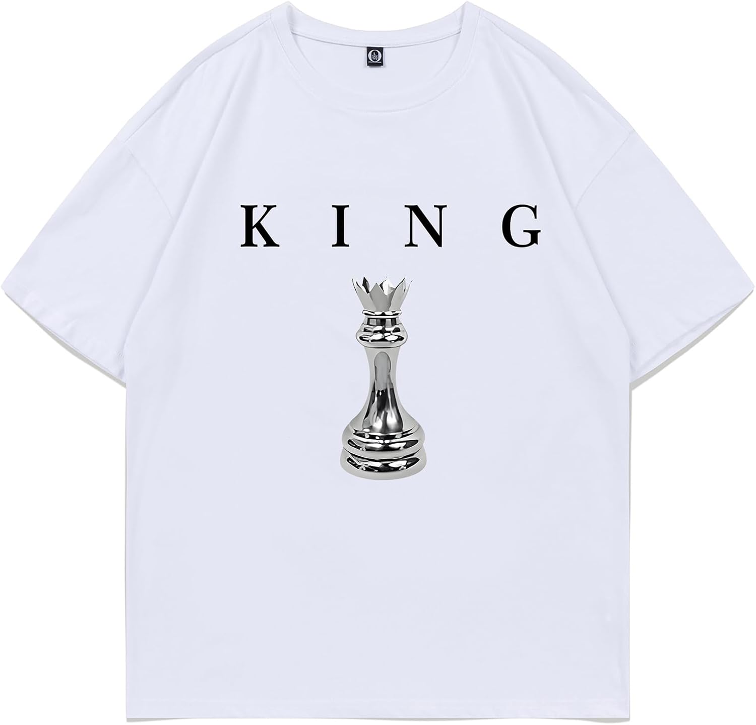 Kelxjia Men's King Chess Shirt Graphic Tees Designer Printed T Shirts for Men Urban Letter T-Shirt Streetwear