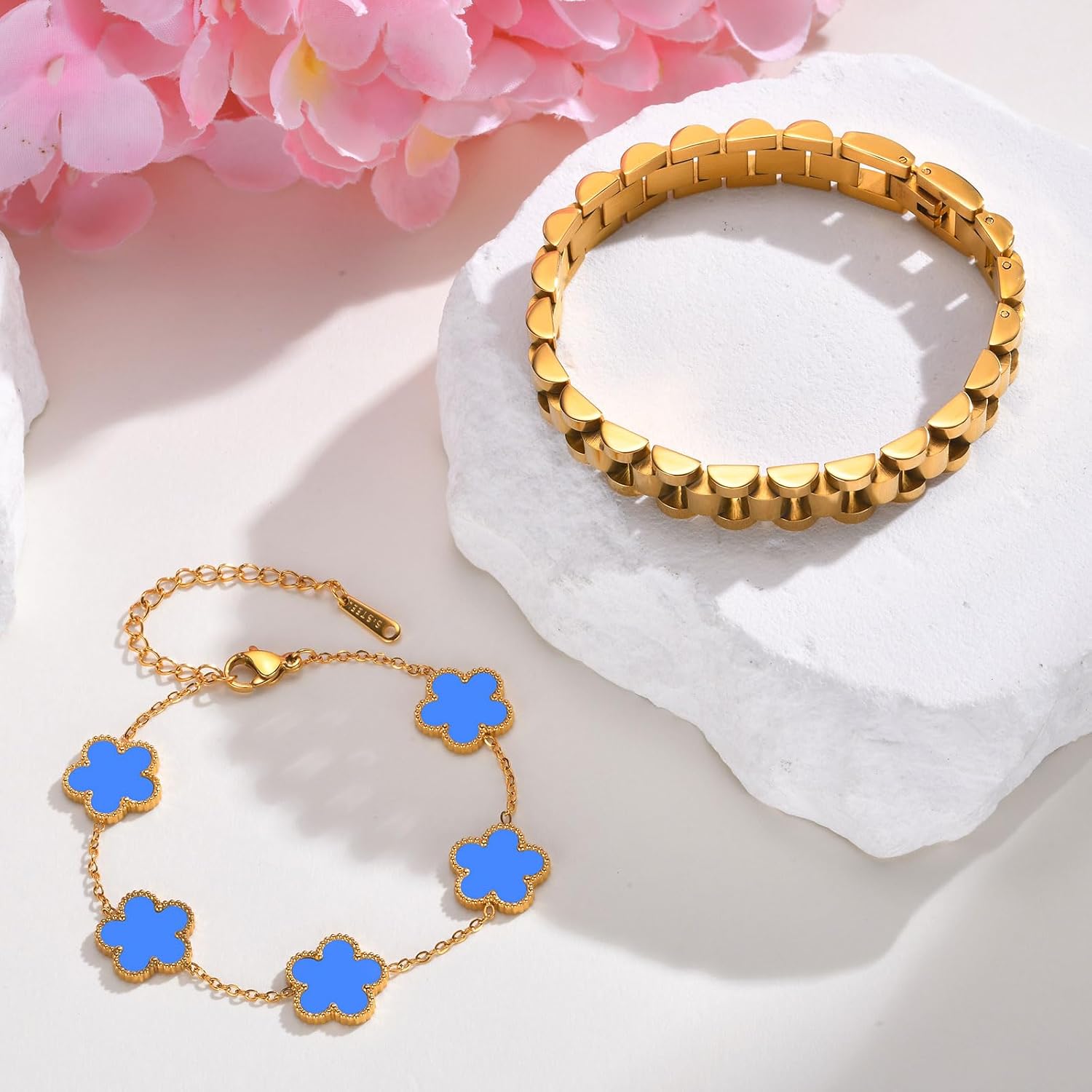 2pcs Gold Bracelet for women:A simple yet elegant style chain bracelet allows you to shine wherever you are.Cute floral bracelet with a touch of design is definitely a fashion item for any lady's closet.