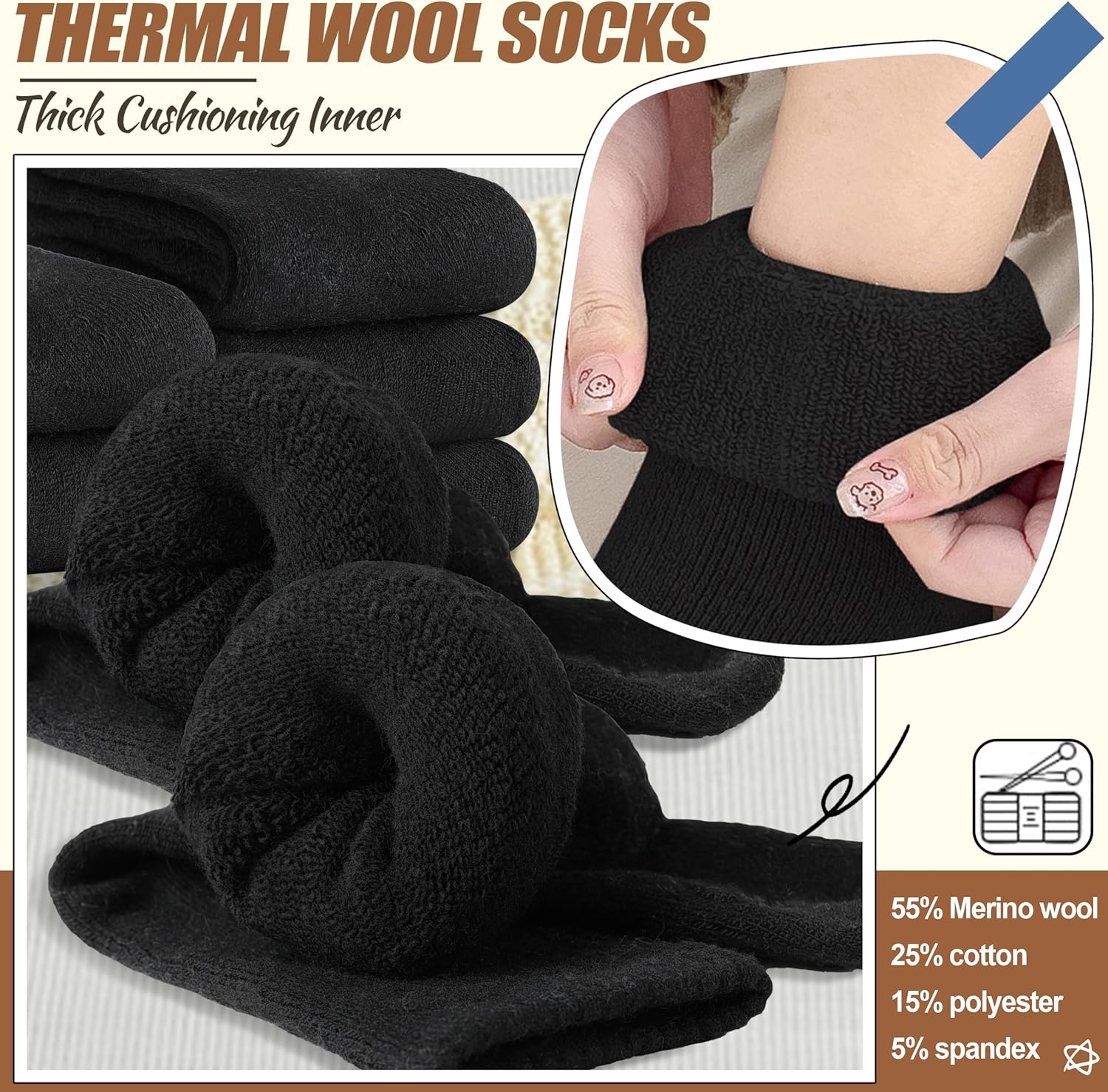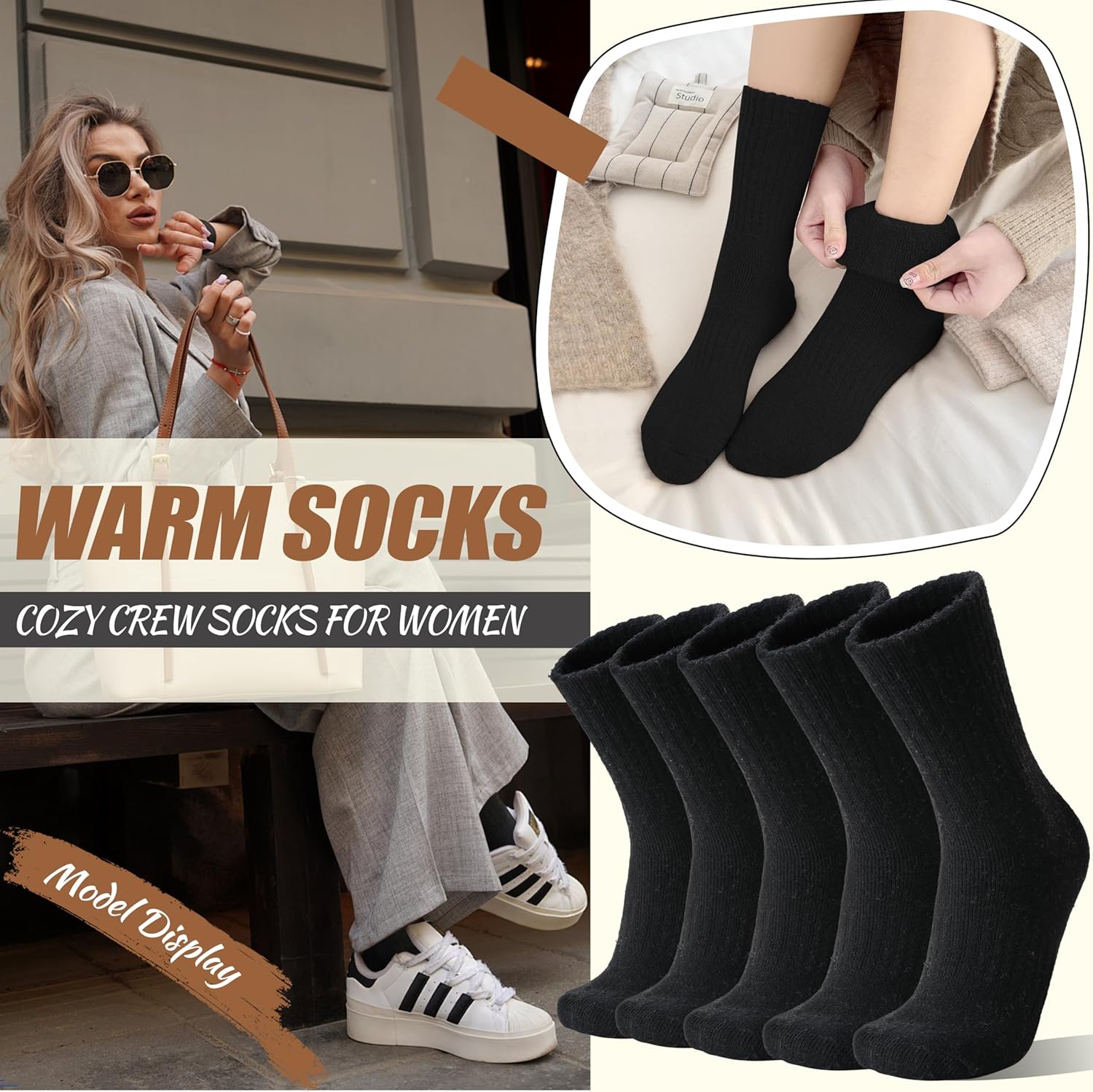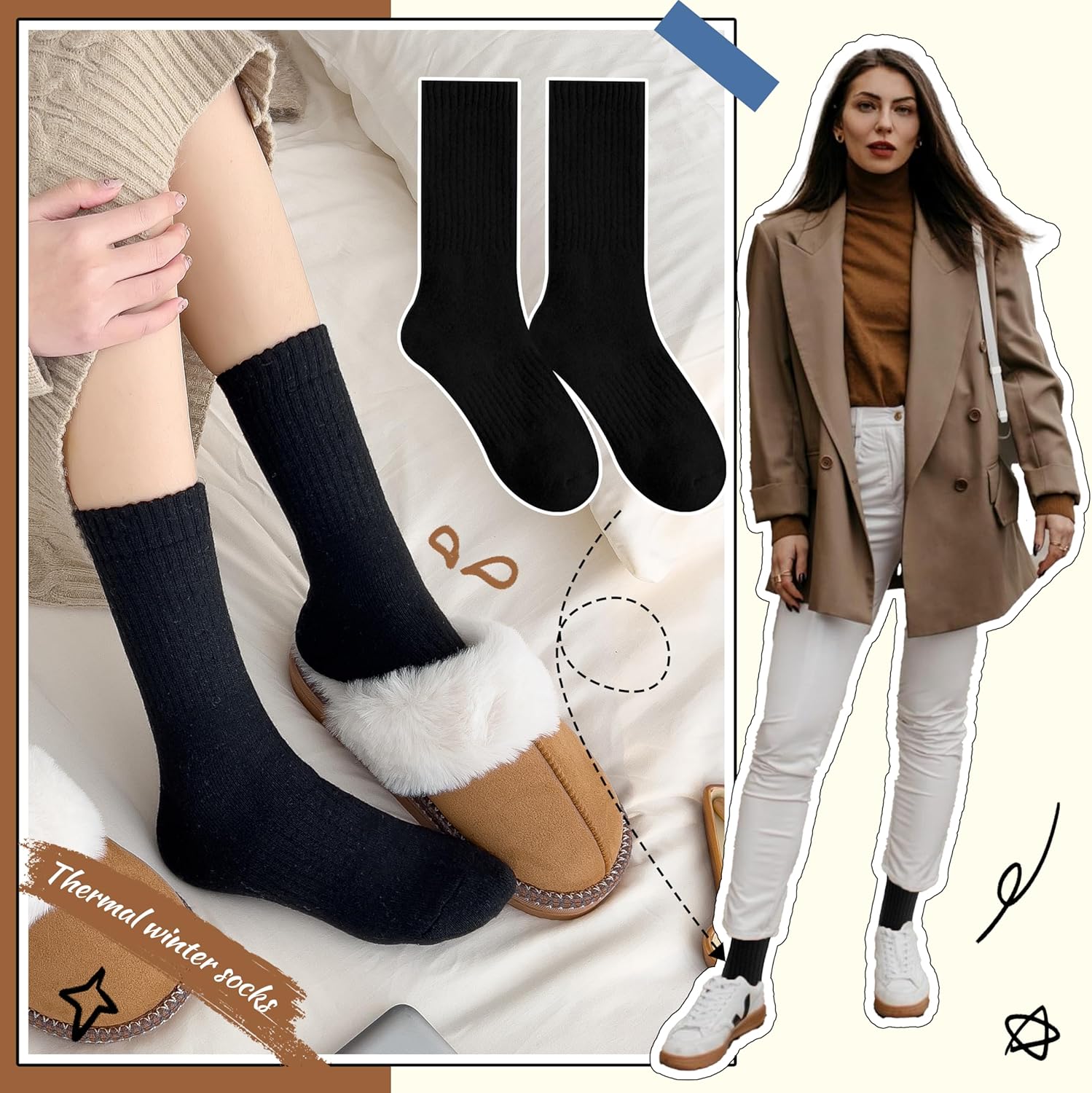 HIGH QUALITY : EBMORE fashion women wool socks are blend of 55% Wool, 25% Cotton, 15% Polyester, 5% Spandex. It’s a premium High Quality merino wool socks, so the socks is very soft, heavy but breathable, cozy, fuzzy inner lining and will keep your feet comfortable and warm.