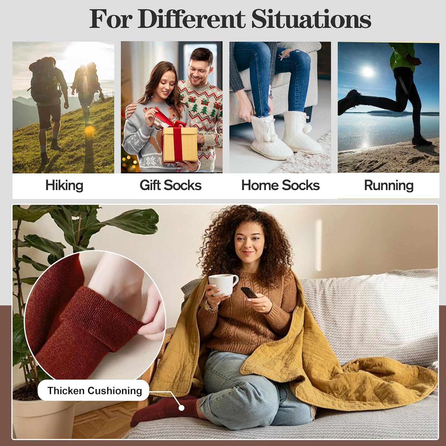 FIT MANY OCCASIONS : These high-quality womens warm wool socks are suitable for different situation, you can wear them as heavy socks, hiking socks,thermal socks, thick socks, warm socks, heavy duty socks, boot socks, soft socks, outdoor socks, sport socks, cabin socks, crew socks, office socks, school socks, indoor socks, home socks, work socks, knit socks,novelty socks, comfy socks, cold weather socks or Christmas socks.