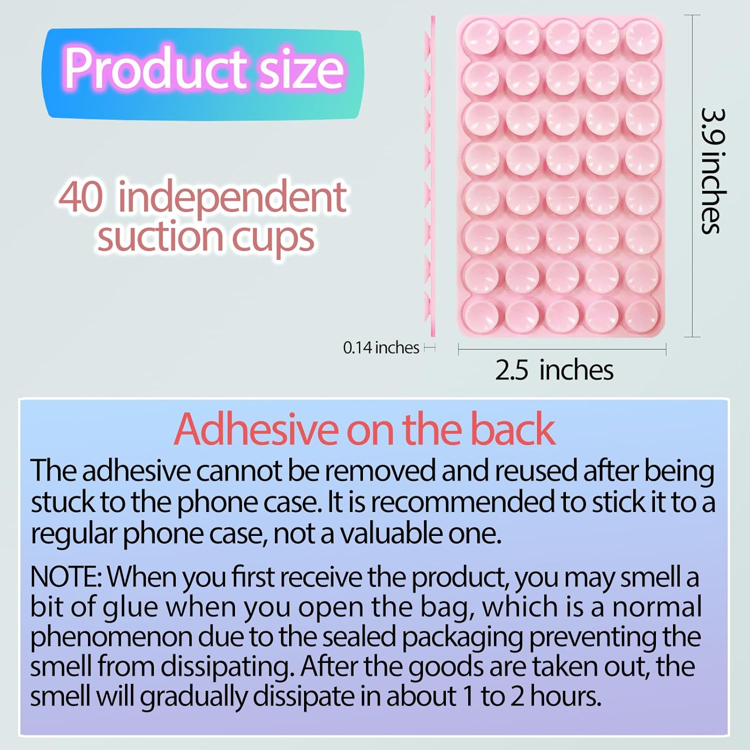 Back of Phone Suction Grip: Remove the adhesive film on the phone suction cup and stick it on the phone case. You can then fix the phone on any smooth surface, which is very convenient. (The phone suction cup cannot be removed and reused after being attached to the phone case. It is recommended to attach it to a regular phone case, not a valuable one.)