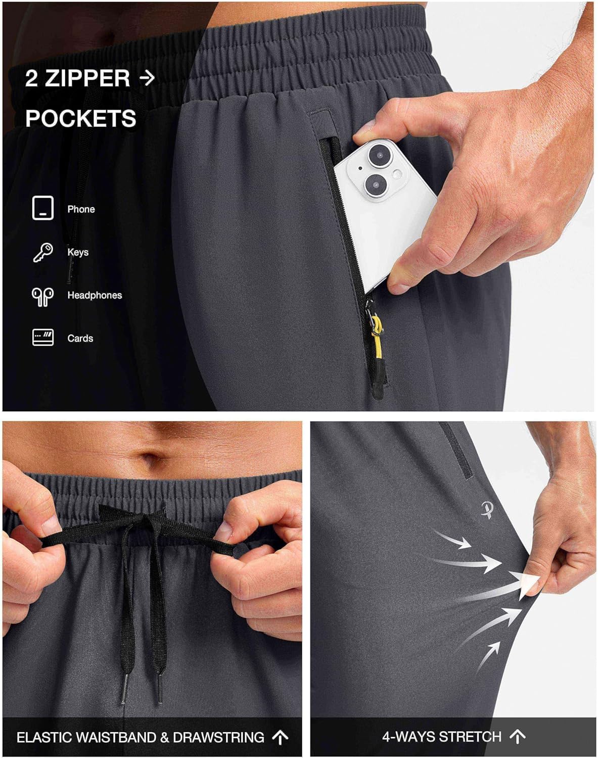 Pudolla Men's Lightweight Hiking Pants Quick-Dry Outdoor Sweatpants with Zipper Pockets for Casual Travel Athletic Workout