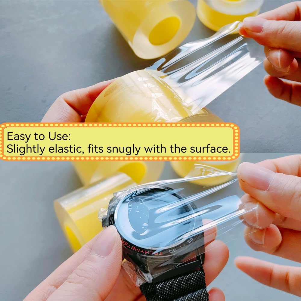 Clear protective film that adheres to itself without leaving adhesive material. Not affecting the original appearance of the watch and jewelry, while providing necessary protection.