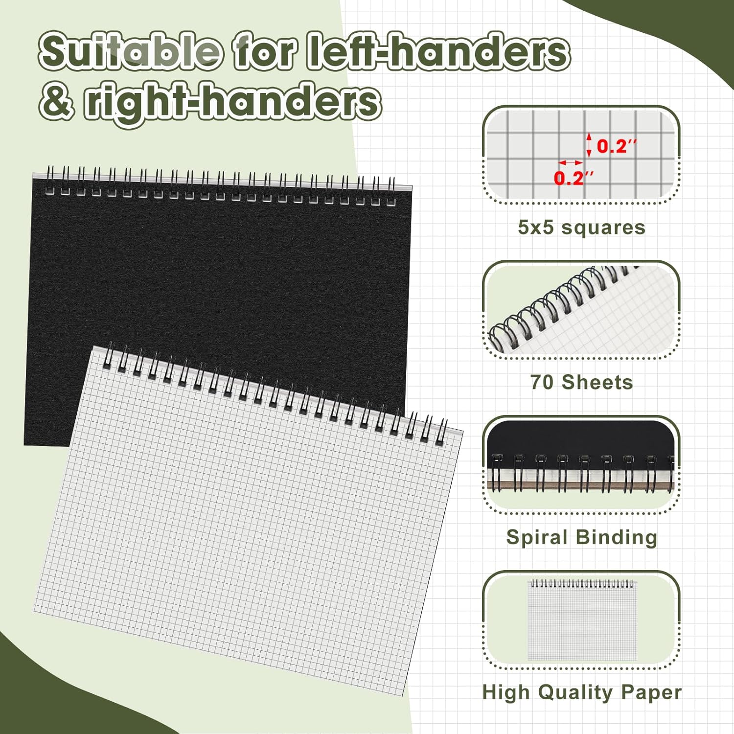 Classic Grid: with a 5mm x 5mm grid printed on each page, these spiral notepads are suitable for planning ideas and drawing or sketching inspiration; Squared graph ruling is ideal for plotting graphs, drawing curves and more