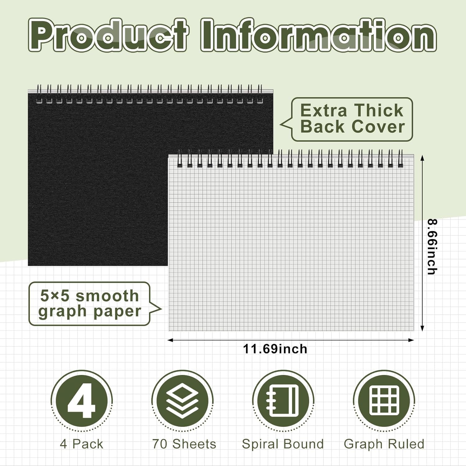 Package Includes: you will receive 4 pcs horizontal A4 spiral notebooks, measuring approximately 8.66 x 11.69 inches/ 22 x 29.7 cm, with 70 sheets in each pad; In professional black, these notebooks are enough to meet your daily work and study needs