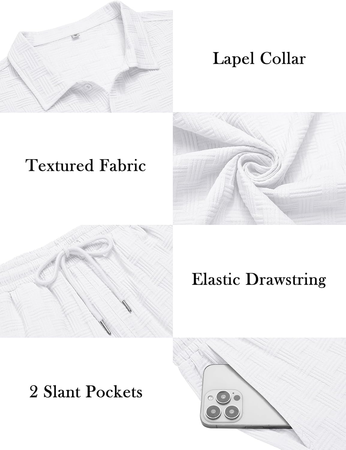 Mens Leisure Suits 2 Piece: Mens fashion textured set perfect for any occasion like beach, casual, daily wear, vacation, party, trip, street, dating, wedding, night out, golf course, weekend BBQ, etc. This Classic Casual Matching Outfits is also perfect gift for a couple/families/friends.