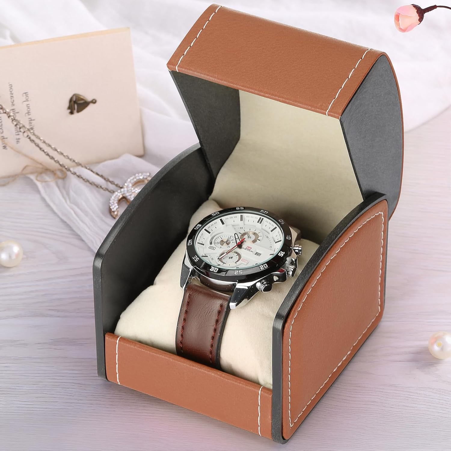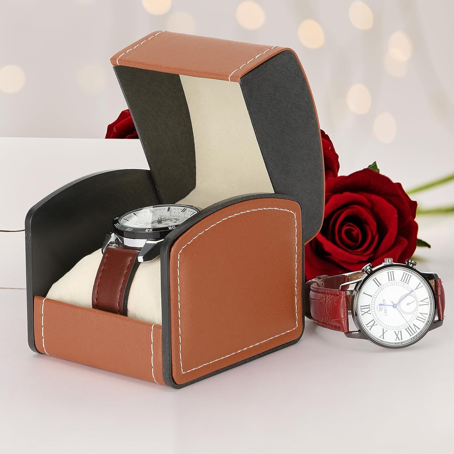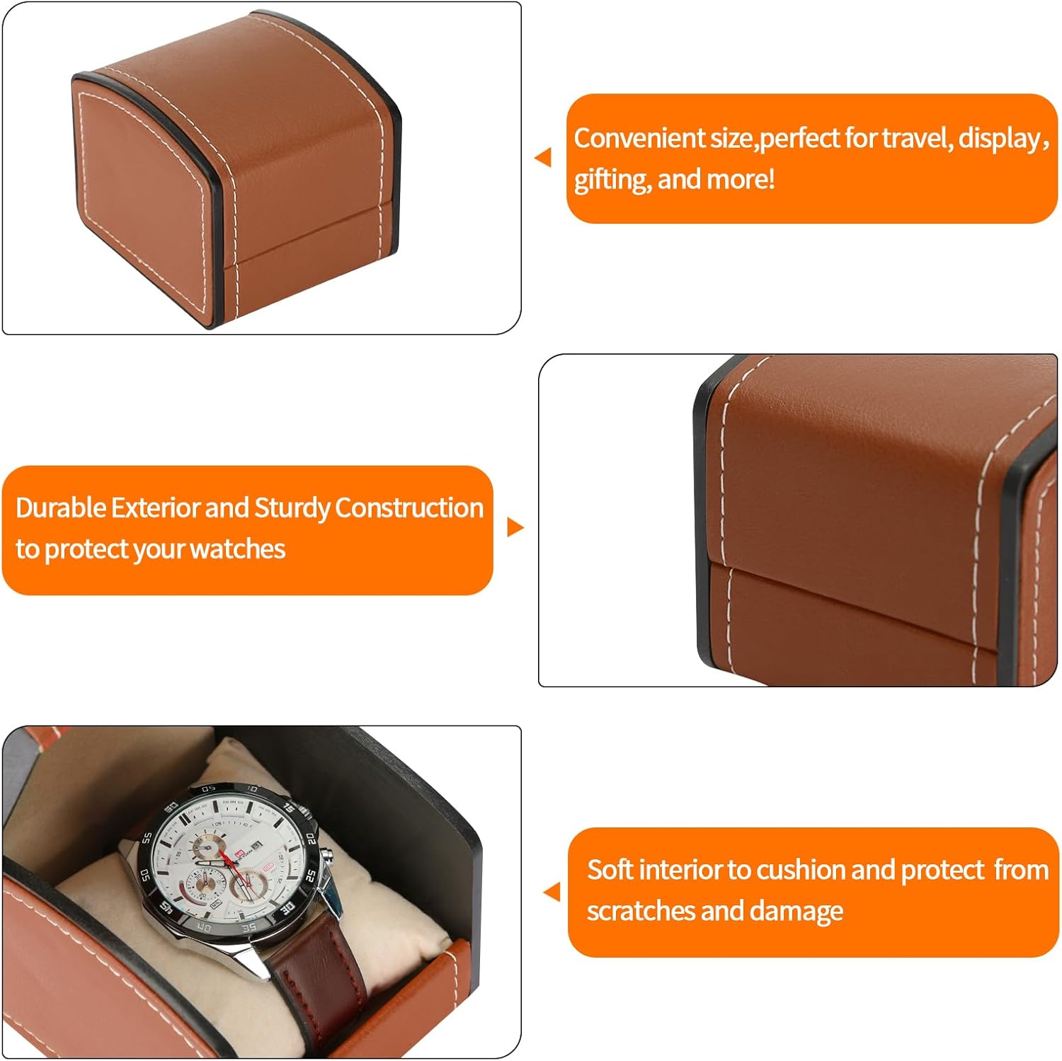 Smooth PU Leather: The outer PU leather of this watch case is smooth and textured, and easy to clean, the precise wiring on the box makes it look more high-end and exquisite