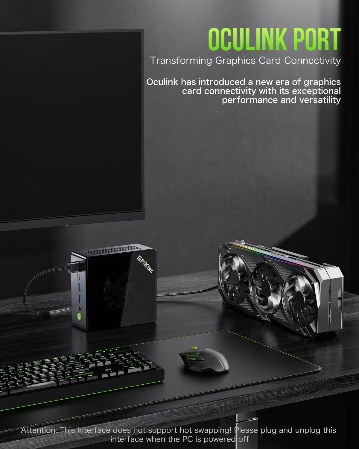 【Oculink Port】 The M7 Oculink port enables higher bandwidth capabilities, better frame rates and lower lag. The standard also operates at PCIe x4 speeds, compared to Thunderbolt's x3. Gamers and content creators can benefit from OCuLink's higher bandwidth, resulting in better performance and lower lag for eGPU setups