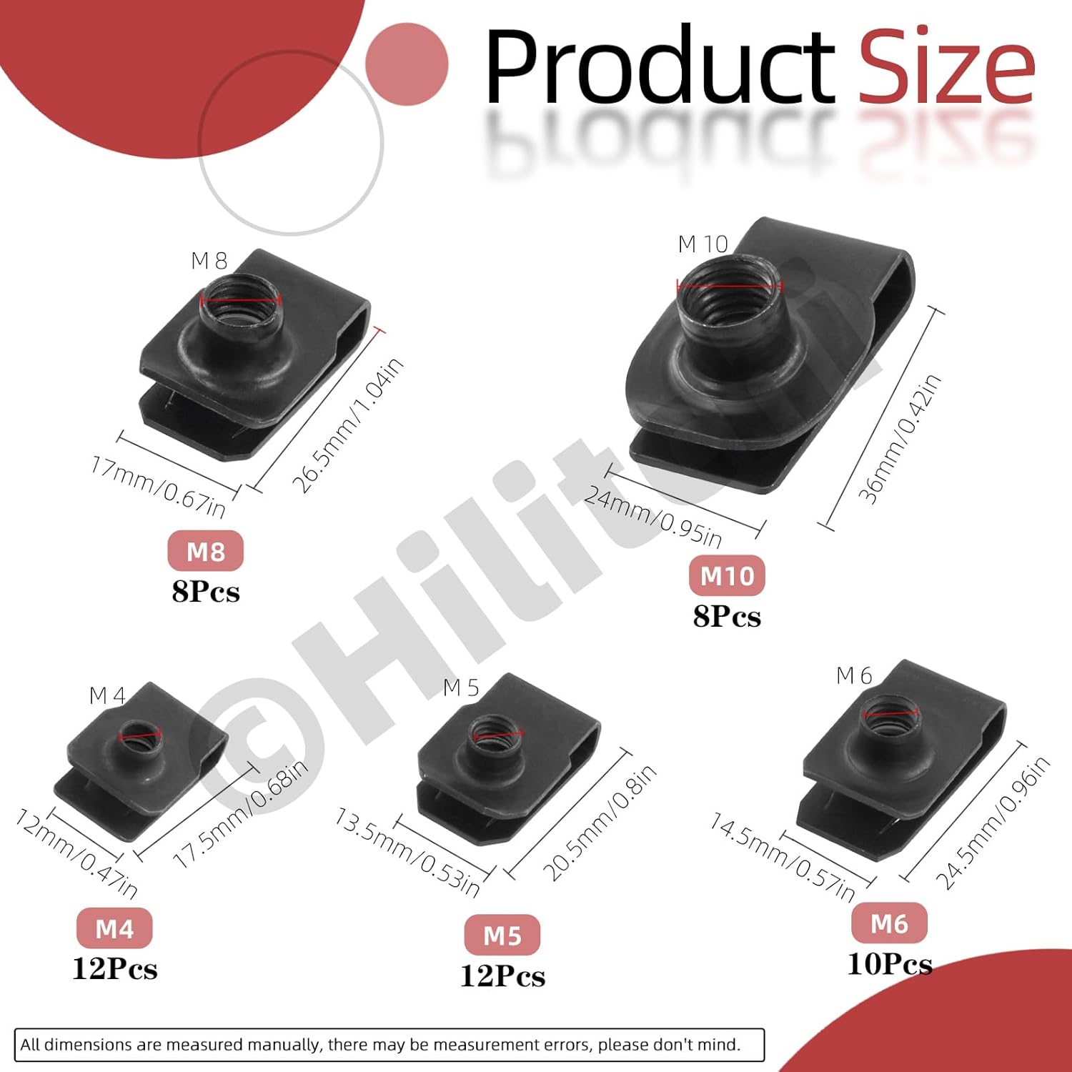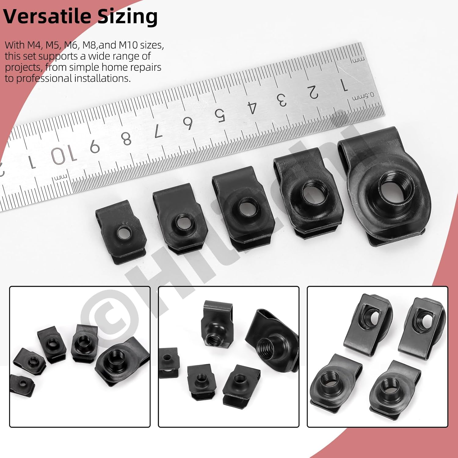 Hilitchi No.4 Black Auto Car U-Clip U Nut Kit Clip Nut Set for Dash Door Panel Interior, Automobile Motorcycle
