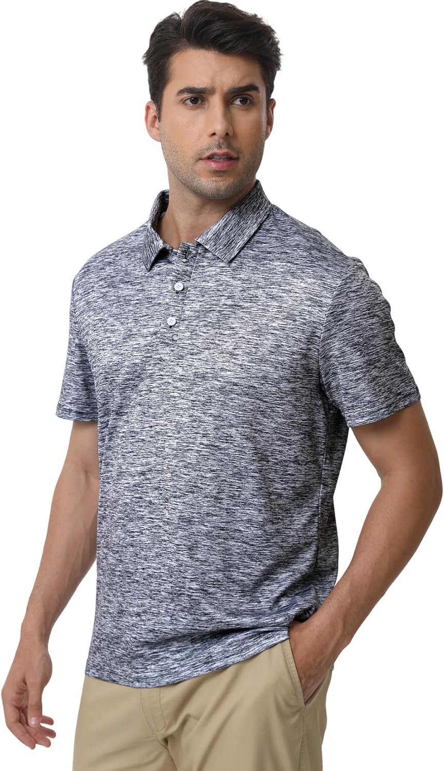 ChicCharm Men's Polyester Pique Polo Shirts Summer Casual Printed Short Sleeve Golf Polo Shirts