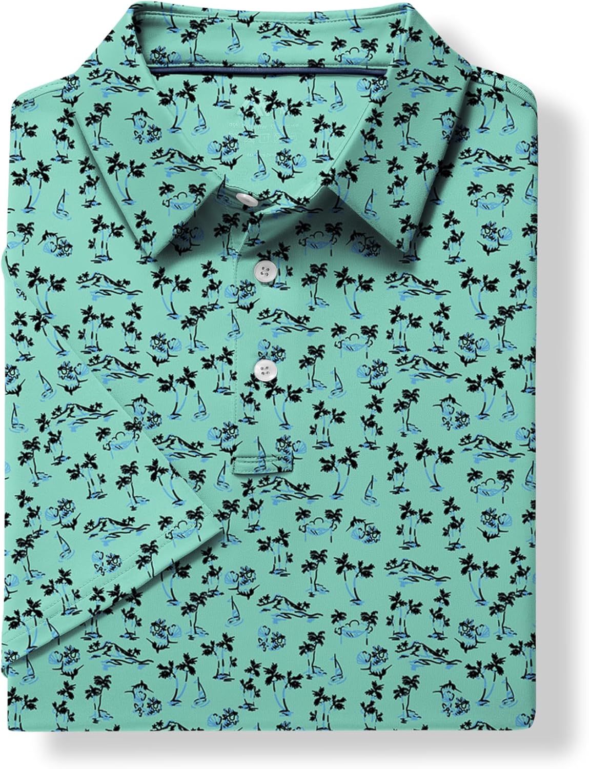 MULTI-MATCHED STYLE: You can match this mens golf polo short sleeve with shorts, dress pants, casual pants, or wear under coat or blazer for a casual or formal look. This print golf shirts will refresh your summer look