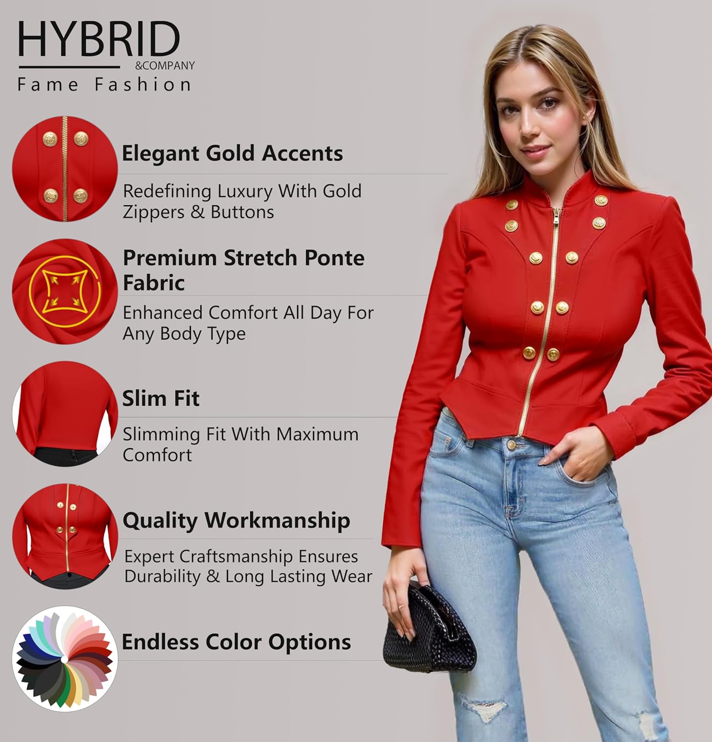 Hybrid & CompanyWomen's Fashion Military Crop Premium Ultra Stretch Gold/Sliver Millennium Zipper Up Dressy Blazer Jacket4.0 out of 5 stars2,279 2,279 customer raitings from $29.99$2999