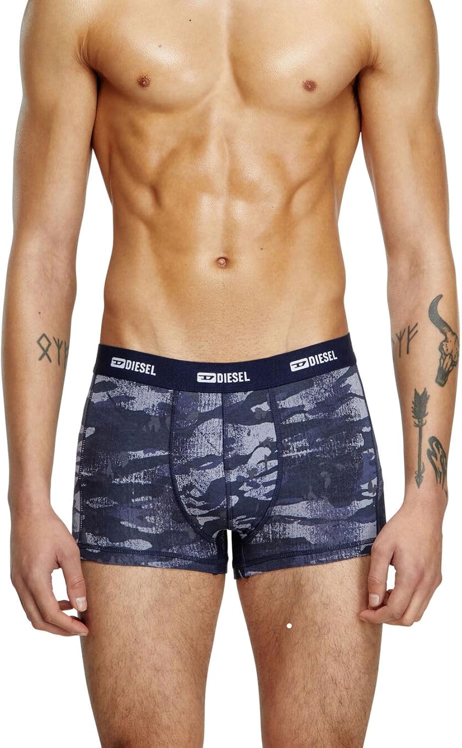 This set features two plain pairs and one camouflage design, each finished with a jacquard Diesel logo waistband.