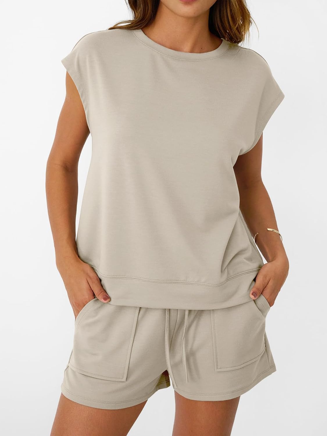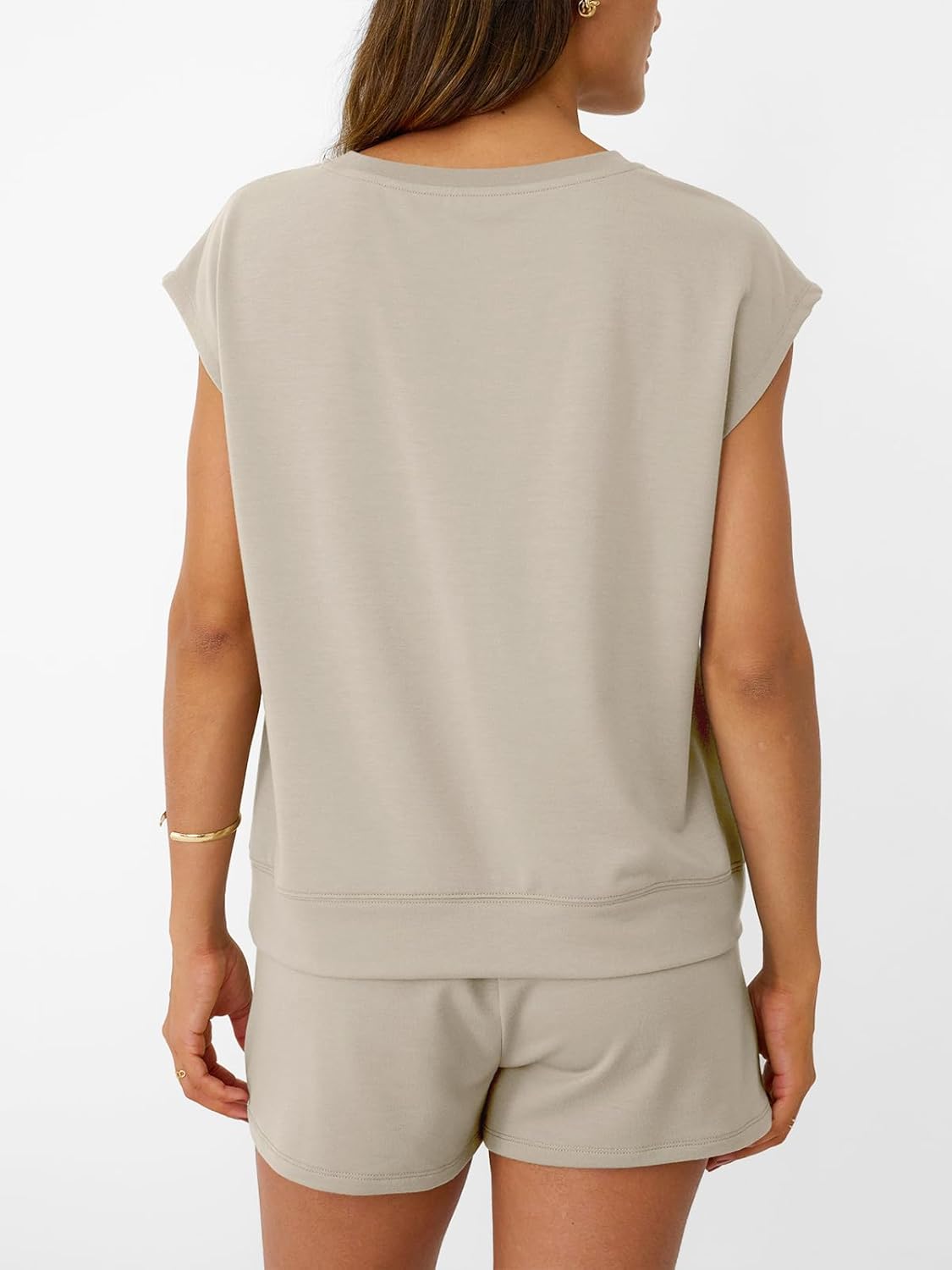TankaneoWomens 2 Piece Lounge Set Short Sleeve Tops Drawstring Shorts Summer Casual Outfits Pajamas4.2 out of 5 stars30 30 customer raitings $29.99$2999