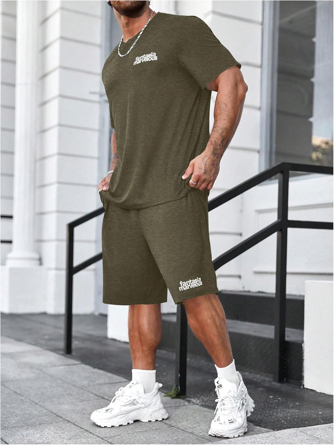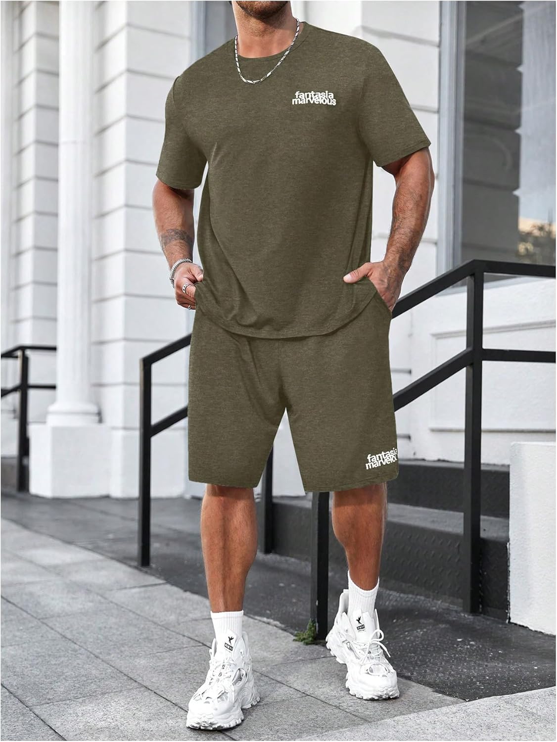 Letter print, round neck, short sleeve, elastic waist, slant pocket, matching sets tracksuit, casual style