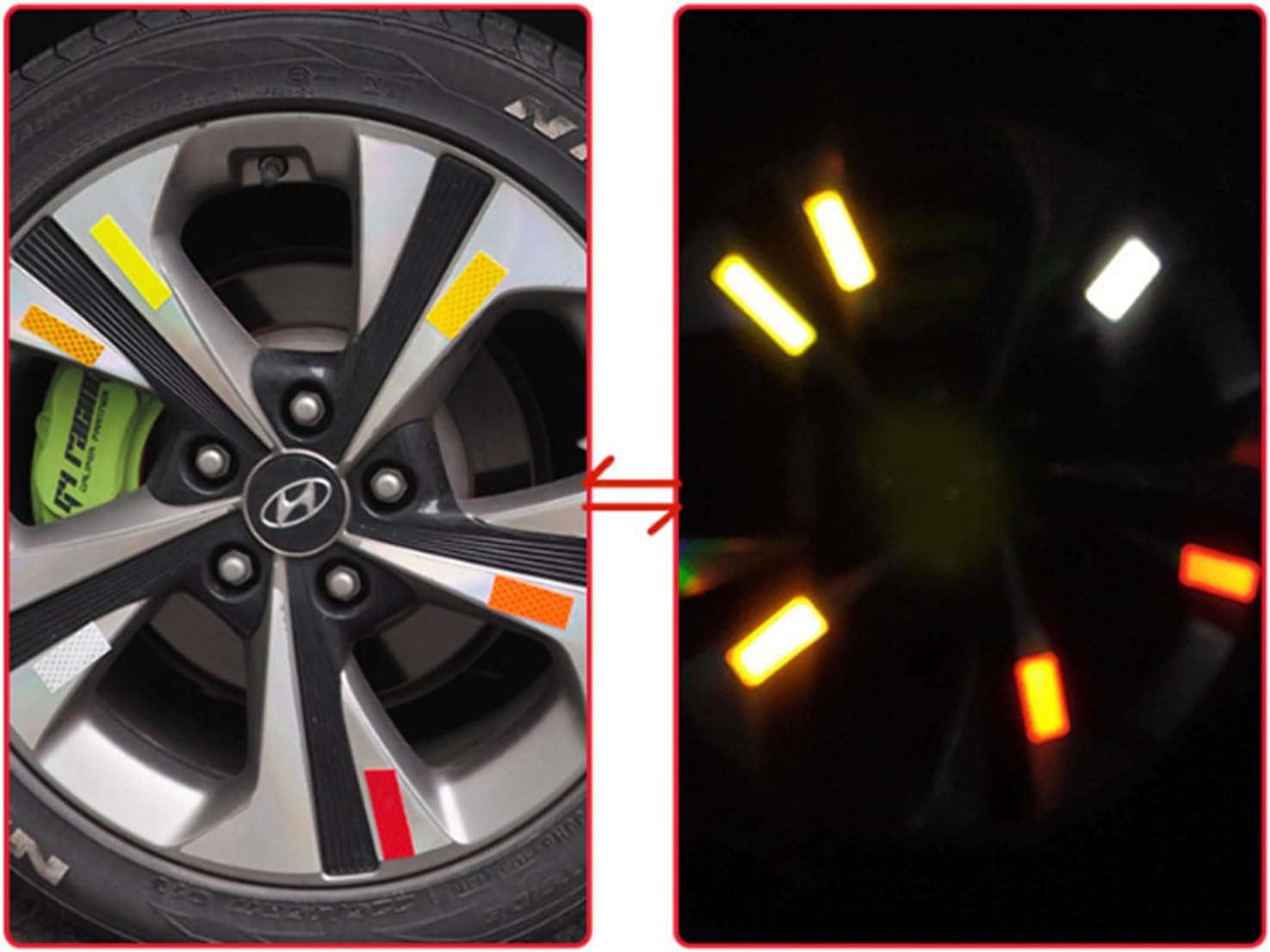 Reflective Stickers can be pasted on the rear of the car, rearview mirror, wheels, etc.Easy to use,It can be used just by peeling off the adhesive, and it's very easy to cut.Note:Before pasting, clean the surface to be pasted, keeping it free of dust, water stains, oil stains, rust, and coating lifting.