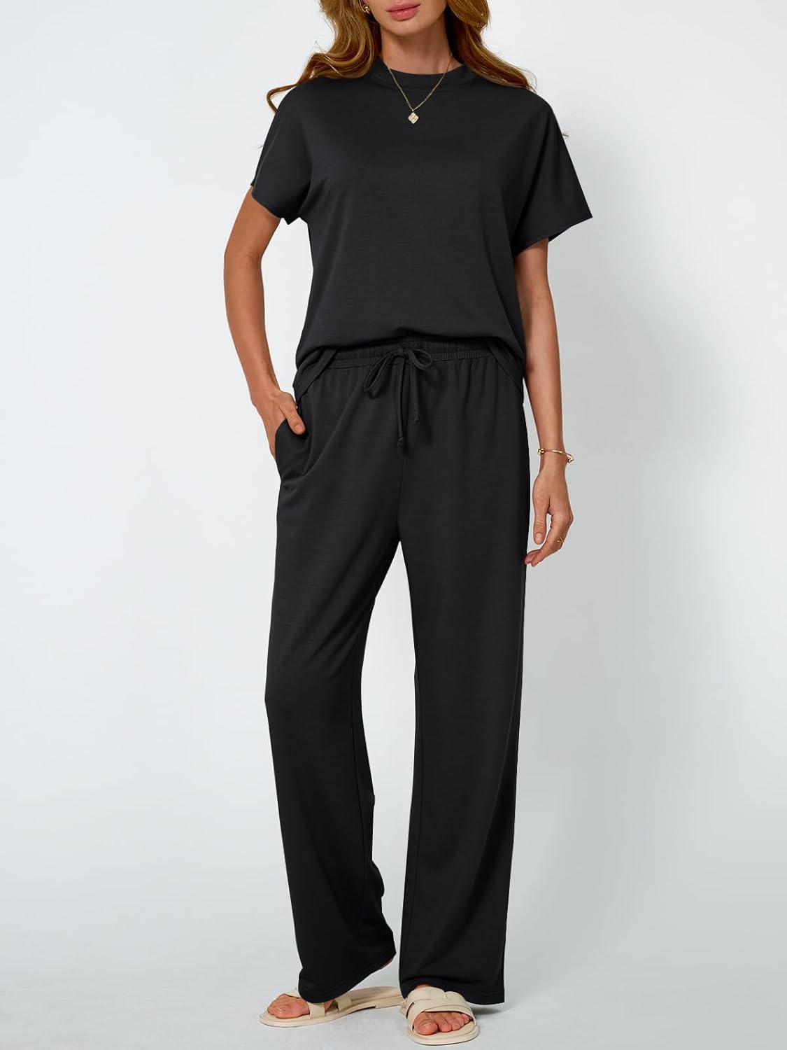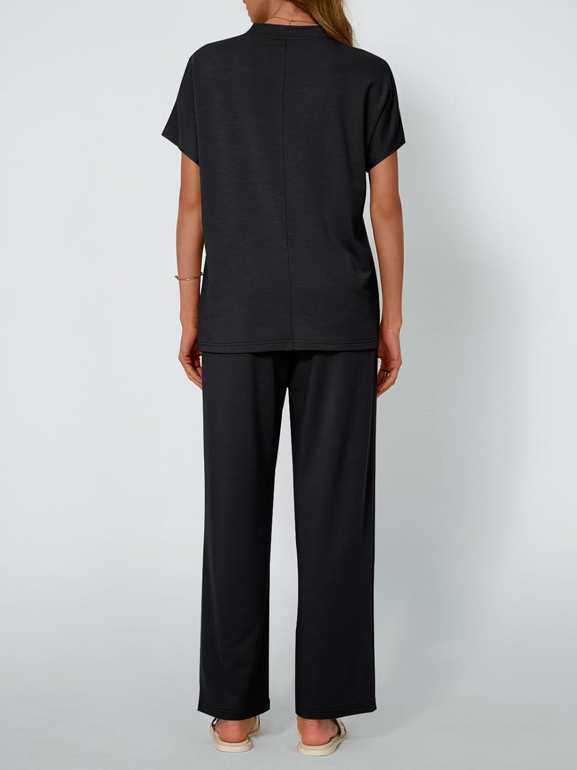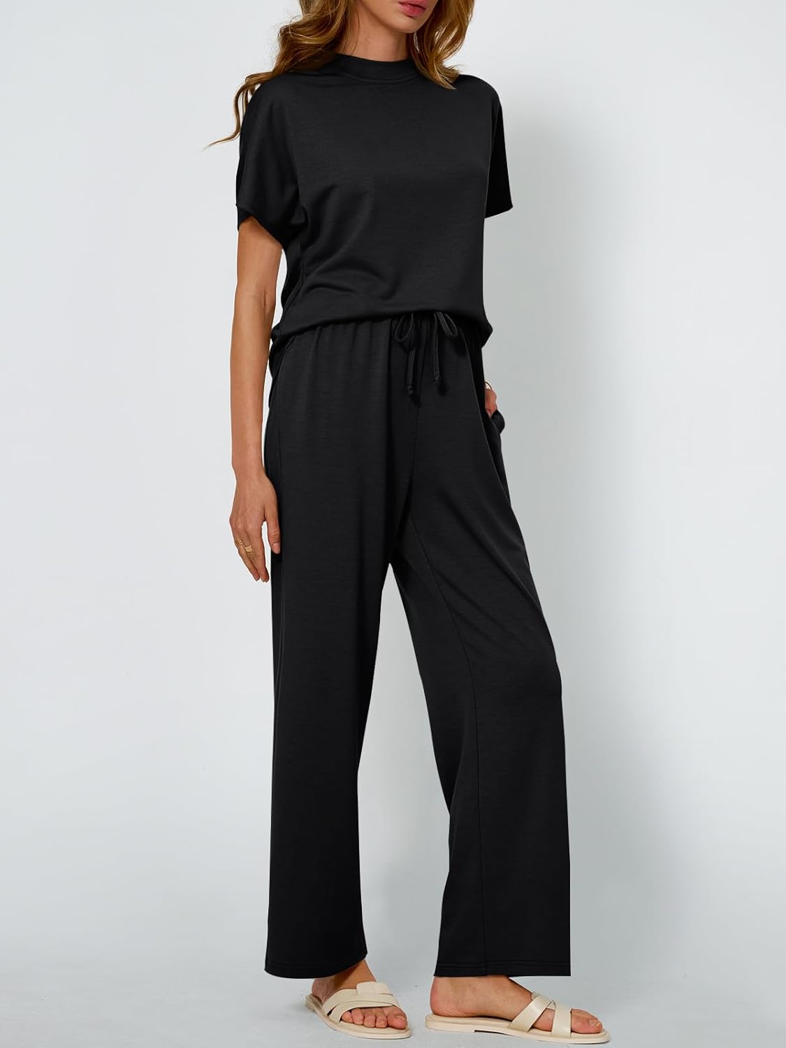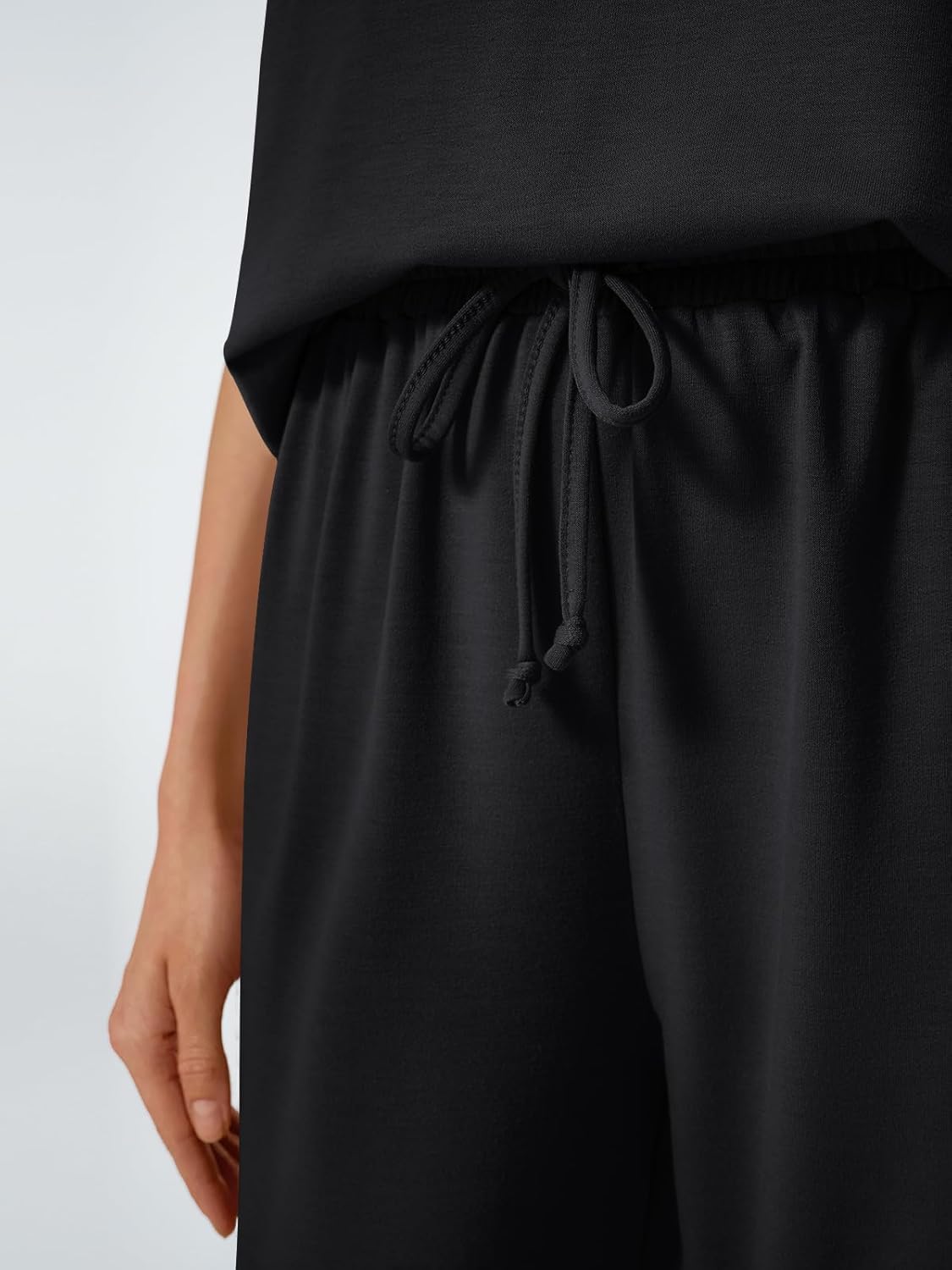 Relaxed Fit & Stylish Design: Both the top and pants offer a loose, effortless fit. The top features a trendy mock neck, while the pants have a wide-leg cut. Perfect for a laid-back summer vibe, whether you’re hitting the streets or chilling at home.