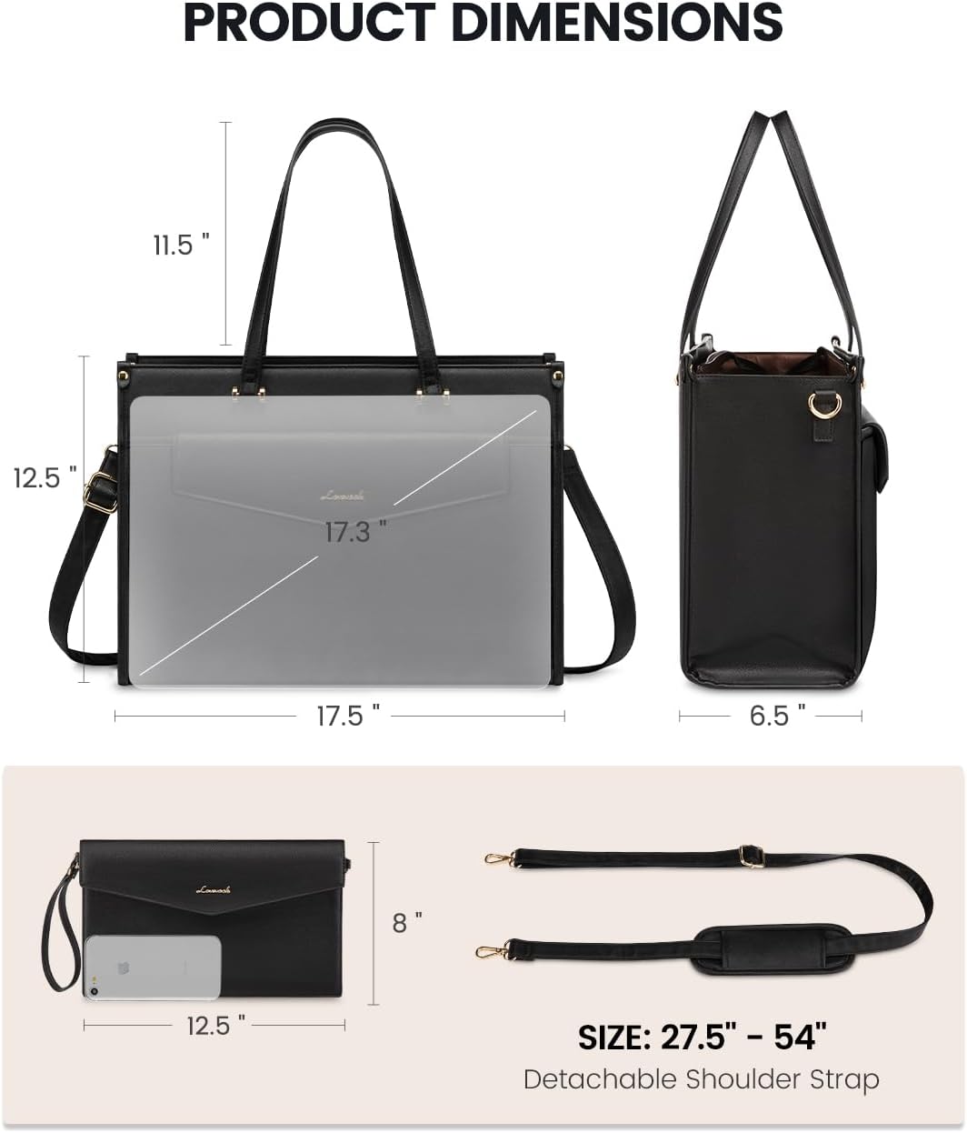 LOVEVOOK Laptop Bag for Women, 17.3'' Laptop Tote Purse 2-in-1 Professional Work Bag Business Briefcase with Clutch Purse,...