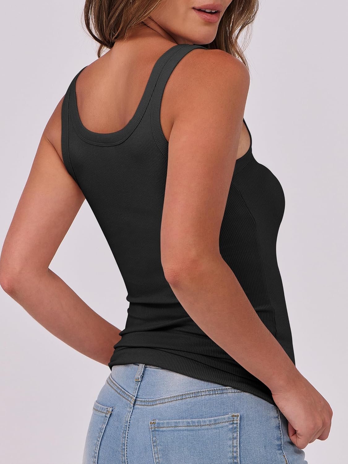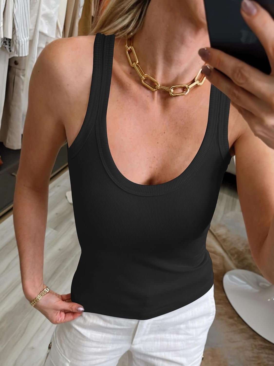 ANRABESS Womens Sleeveless Scoop Neck Tank Top Ribbed Fitted Summer Basic Slim Cute Tops 2025