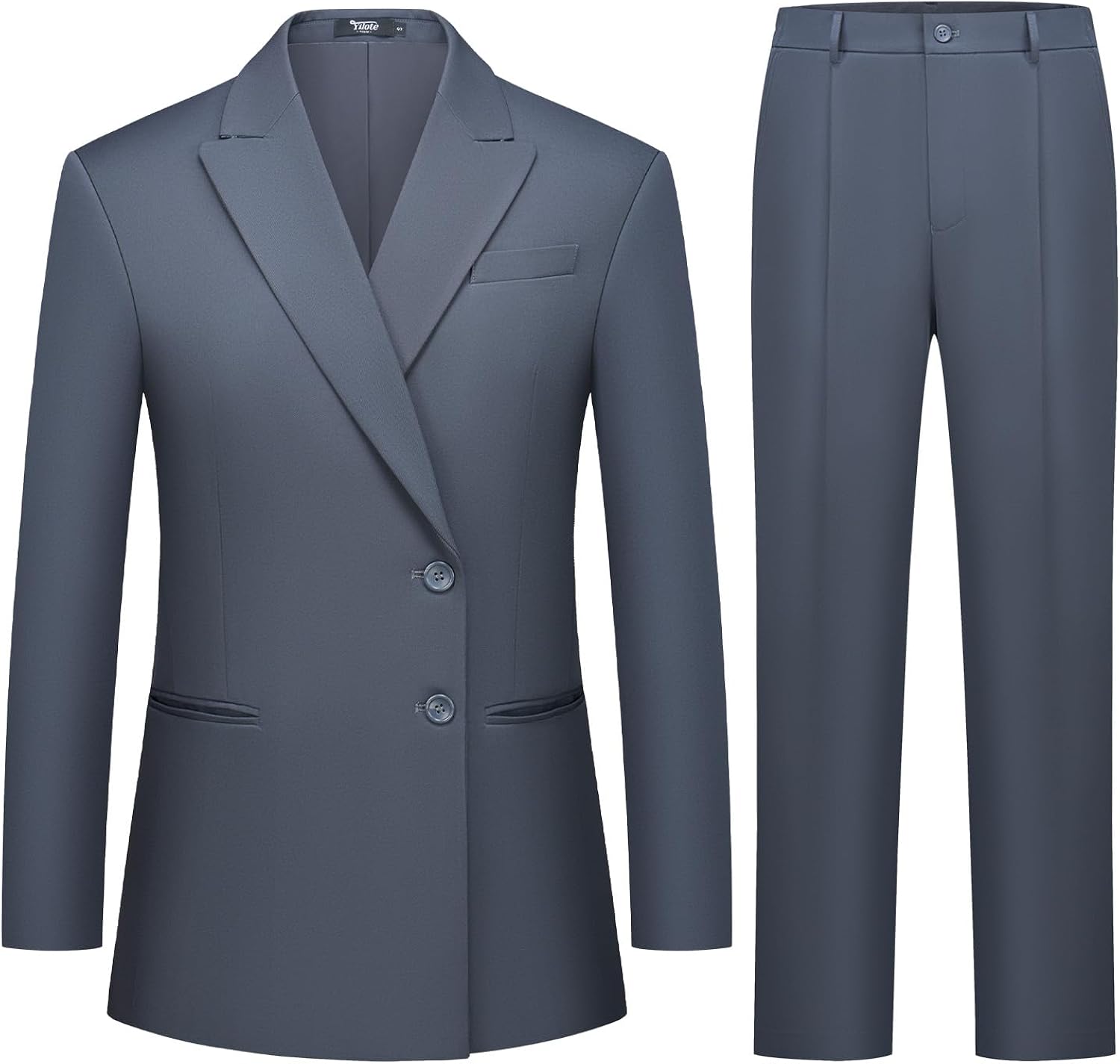 YILOTE Women's 2 Piece Suit Two Button Business Casual Office Work Outfits Dressy Blazer Wide Leg Pants Set
