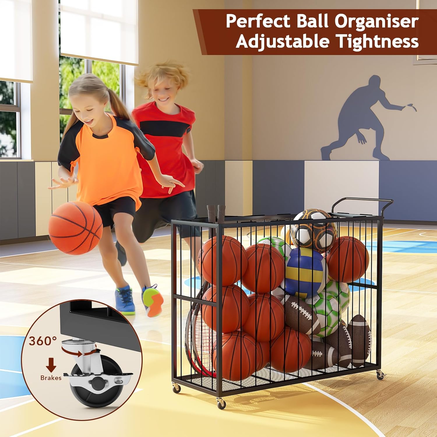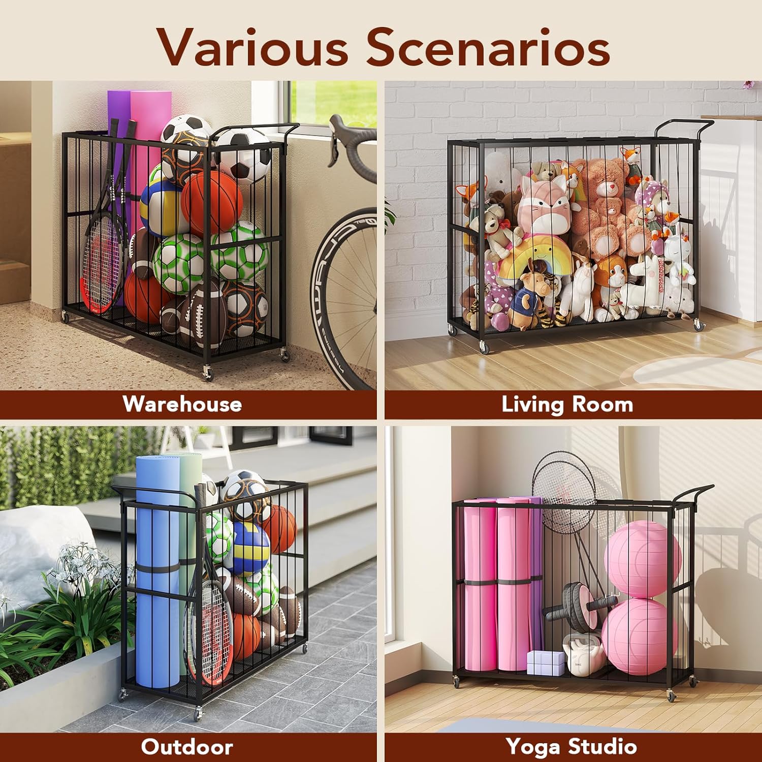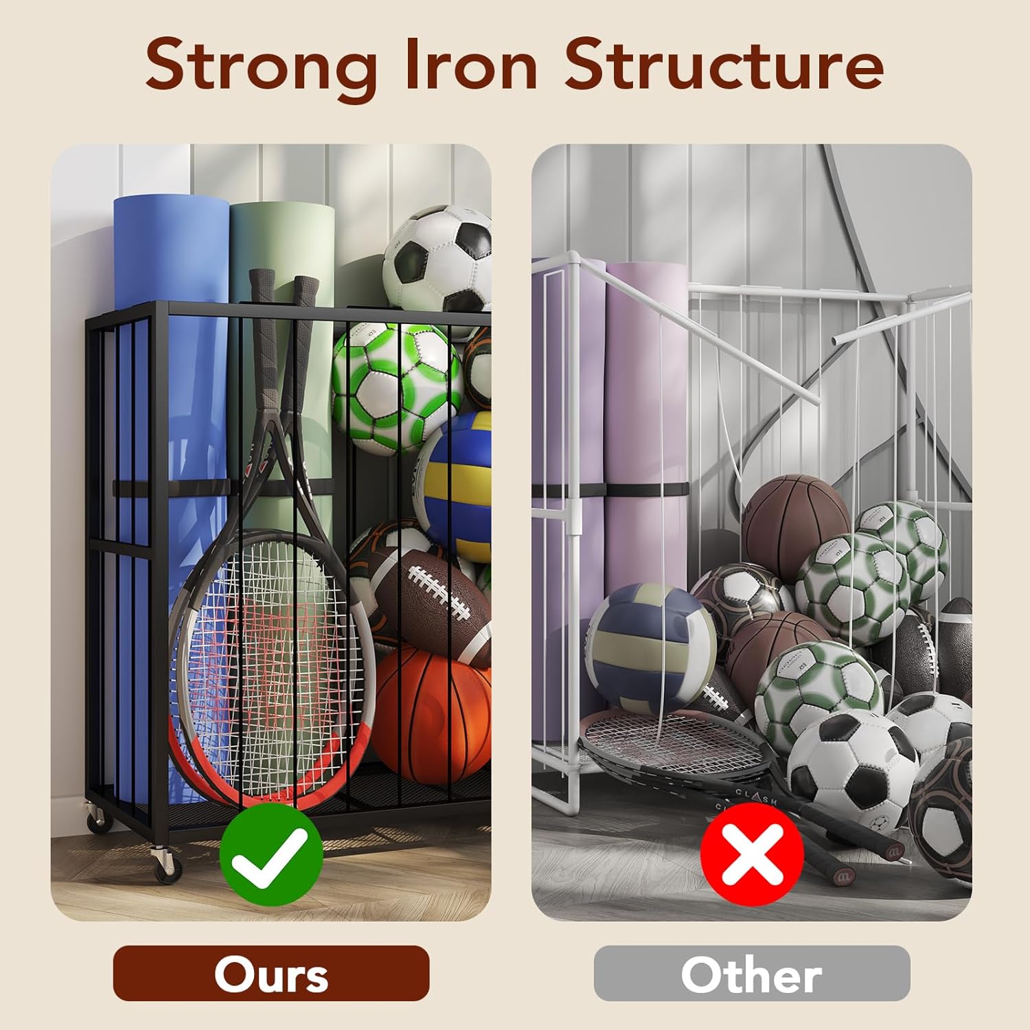 Homsorout Ball Storage Bin Rolling Sports Ball Cart, Metal Garage Organizer Sport Rack, Ball Basket Storage, Ball Cage for...
