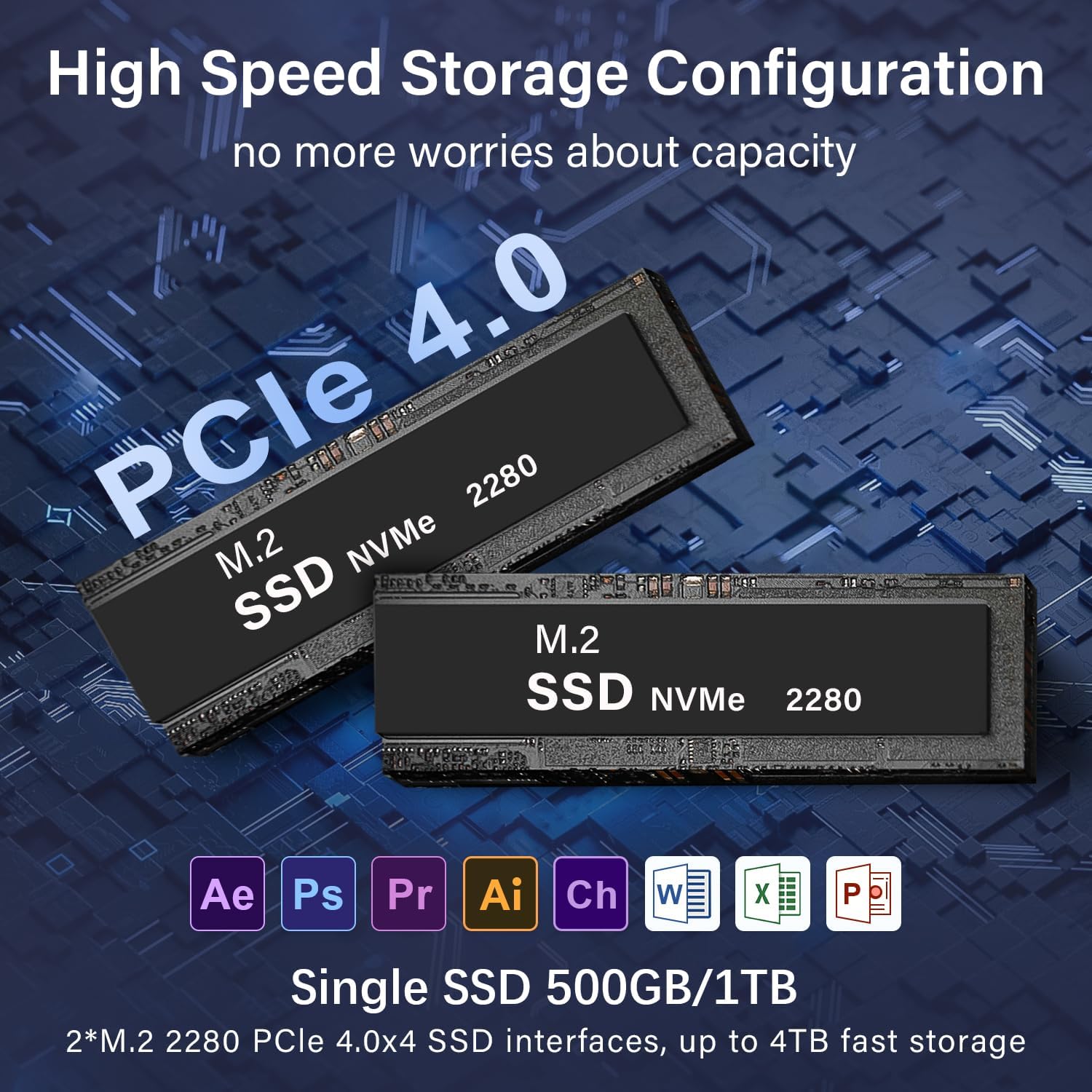 【32GB LPDDR5 and 1TB SSD】The mini computer is equipped with 32GB LPDDR5 RAM 5200MHz.Micron LPDDR5 offers higher performance and lower power consumption to support stable operation of AI applications.Installed with 1TB M.2 PCIe 4.0 2280 SSD and support dual-channel M.2 PCIe 4.0,up to max 4TB(2*2TB,not included).Large capacity enables you to store and access large files,applications,and multimedia content effortlessly.