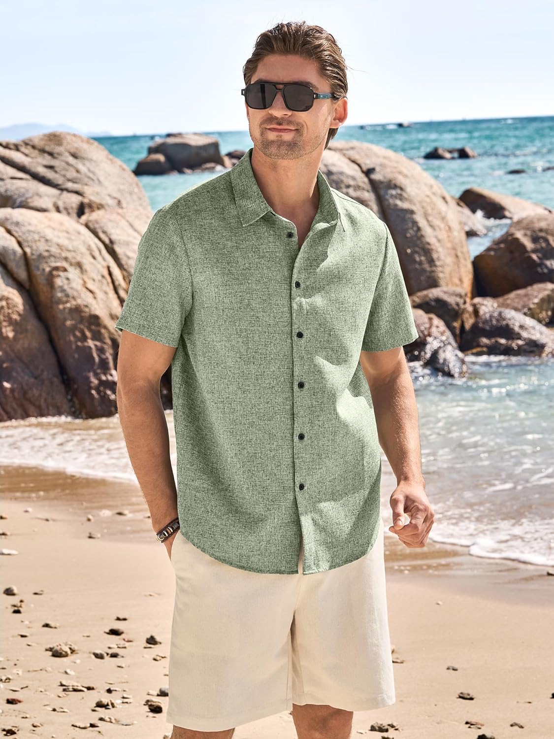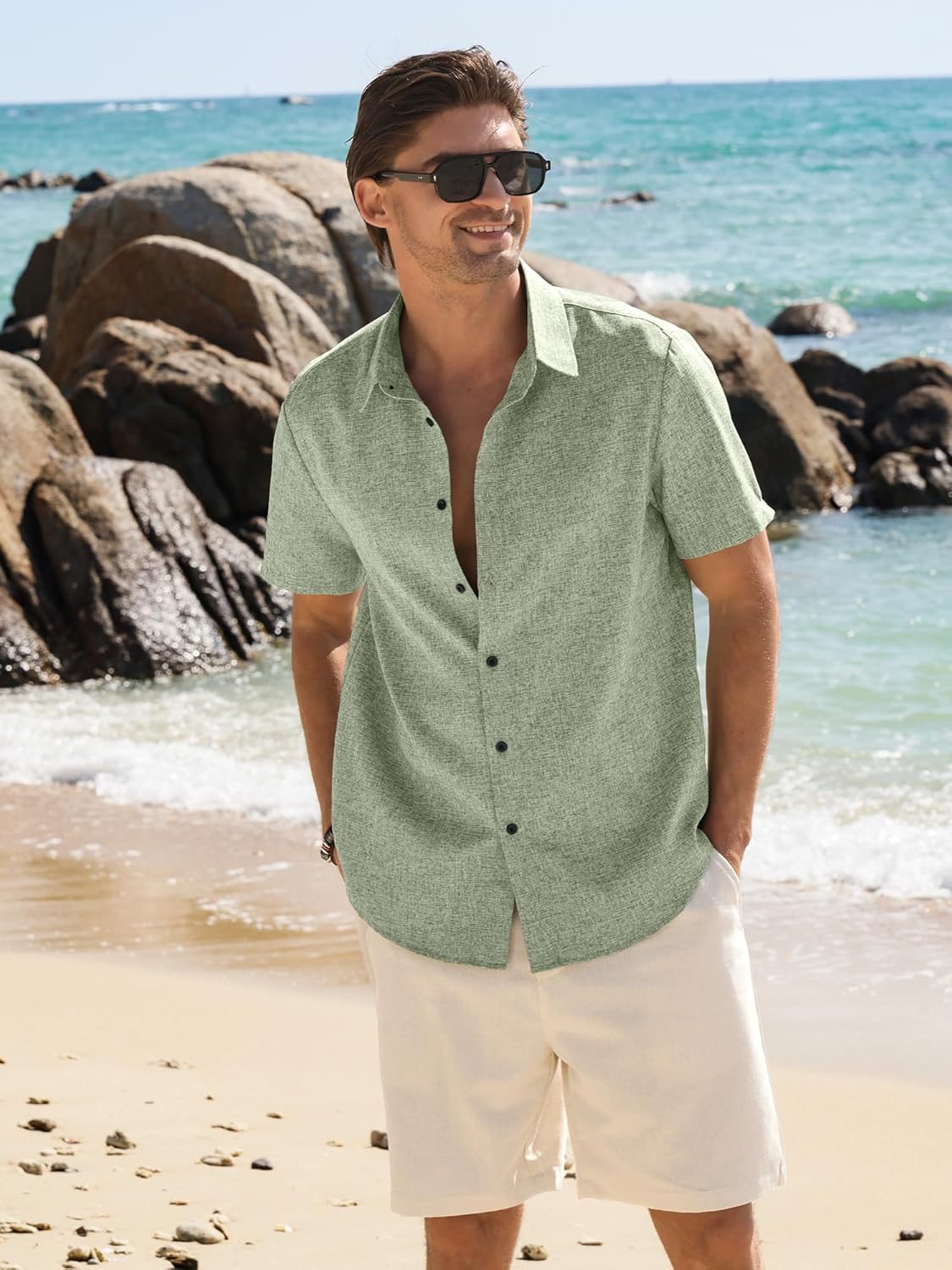 Men's linen shirts can be paired with linen shorts, linen pants, jeans, beach shorts, slacks, solid basic t-shirts or other casual wears. Suitable for weddings, summer vacation, beach party and more as you like.