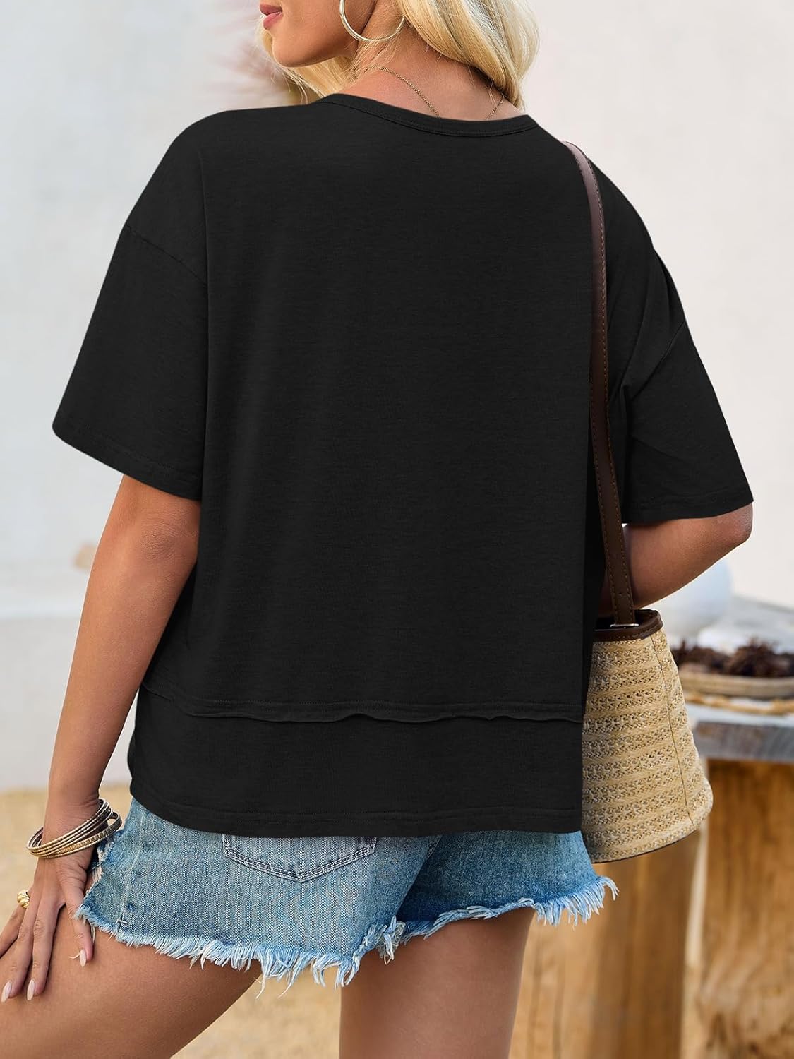 Effortless Pairing: Pair this loose-fit tee with jeans or shorts for a casual day out, or tuck it into a skirt for a polished look. The flowy design makes it ideal for layering with cardigans or jackets on cooler days