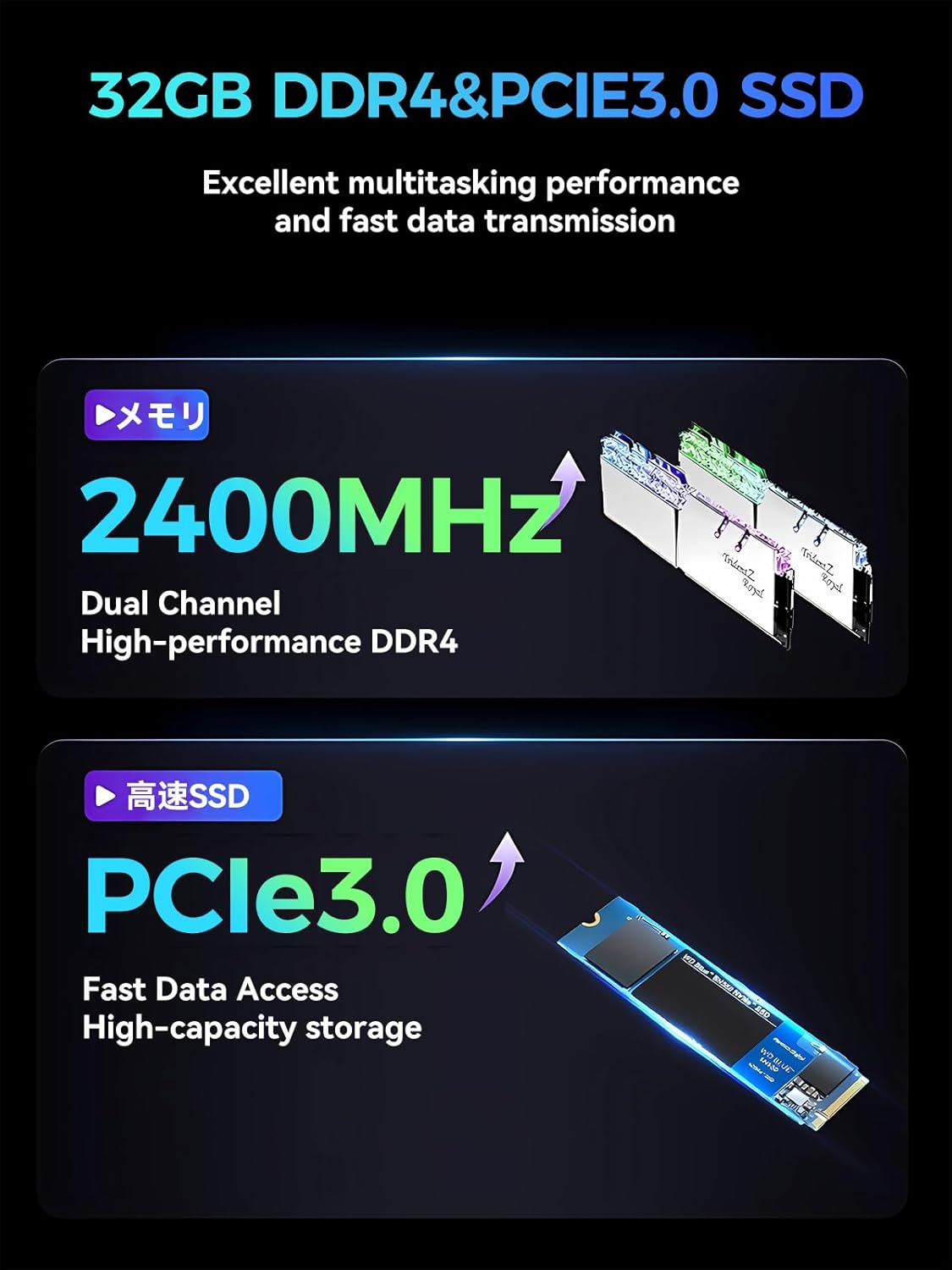 【Ample Storage and Memory】With 32GB DDR4 of RAM and a 1TB M.2 2280 NVMe PCIe3.0x4 SSD , you can enjoy fast data access speeds and store large amounts of data, ensuring efficiency and reliability.