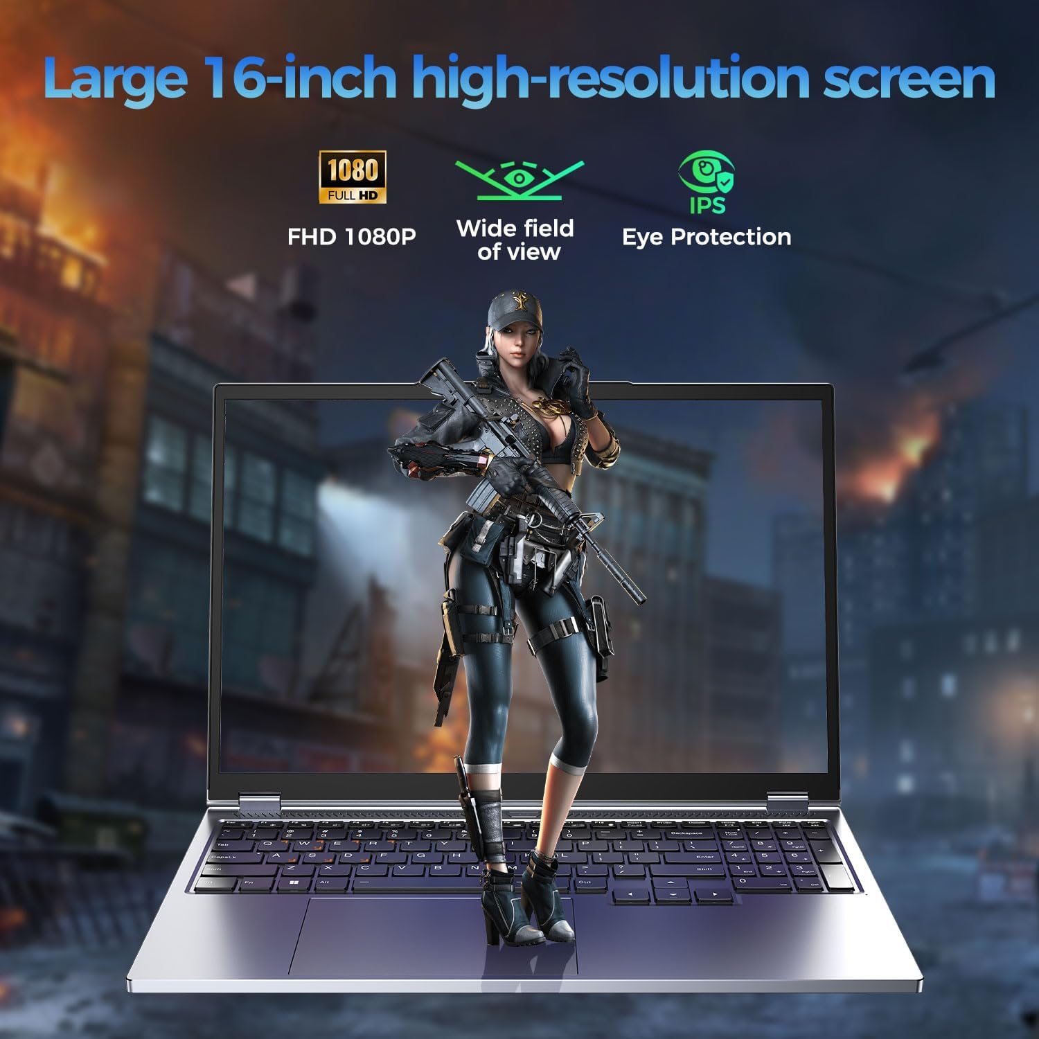 【Expansive Display】Featuring a 16-inch display, this laptop offers a vibrant and immersive viewing experience, perfect for both work and entertainment.