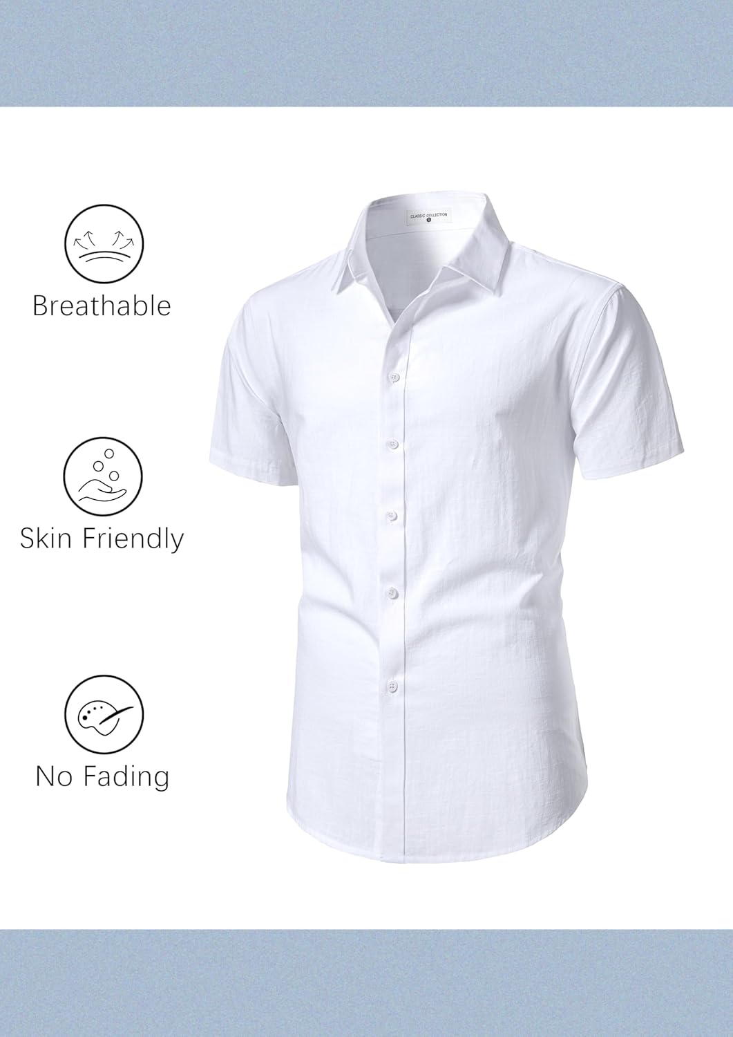 【Comfortable material】This mens short sleeve linen shirts is made from high quality cotton-linen fabric. It is lightweight, breathable, soft, allowing you to enjoy coolness and comfort anytime, anywhere. It's a must-have item for men in the summer.