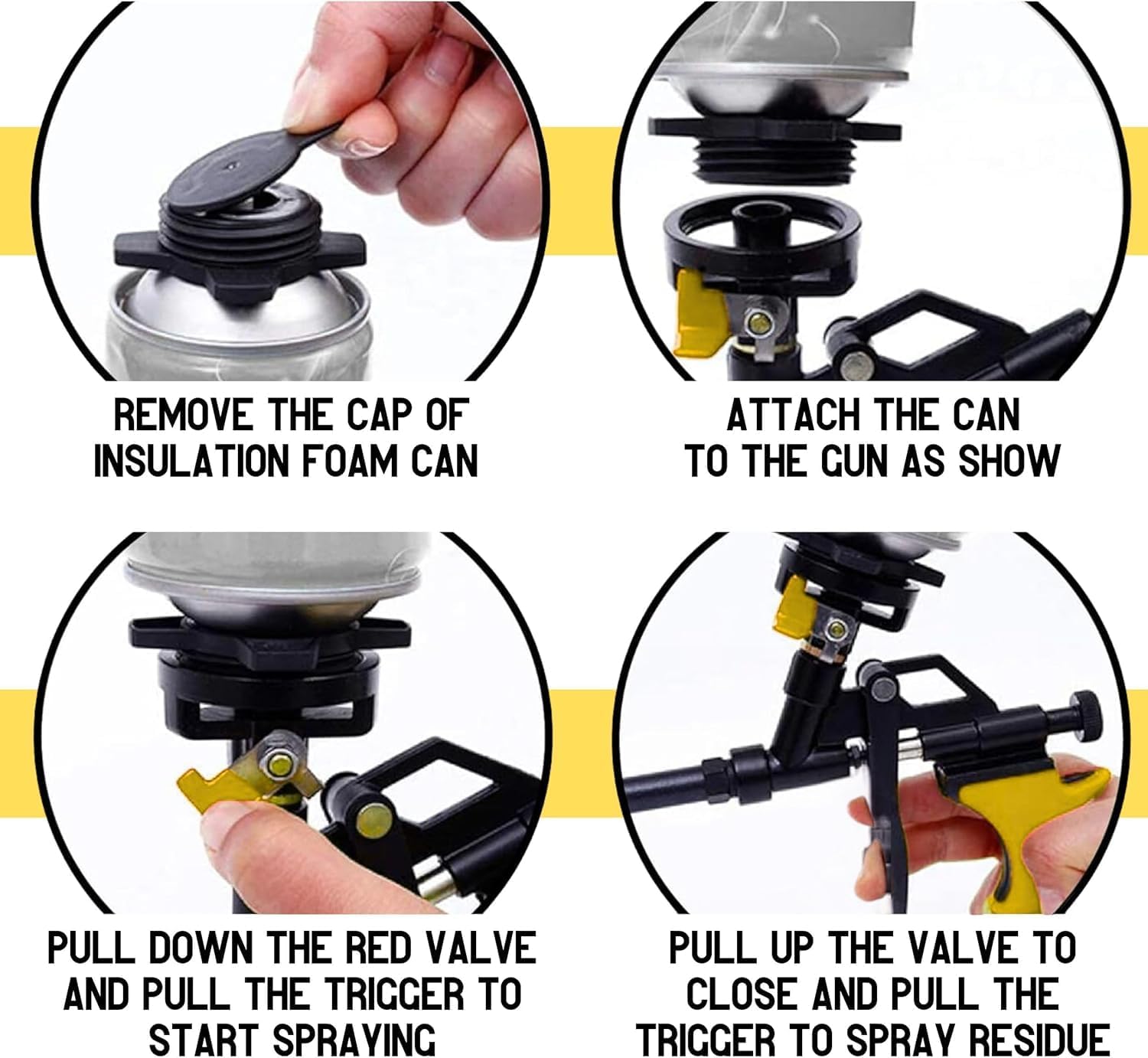 USER-FRIENDLY DESIGN: Foam spray insulation gun is equipped with a trigger mechanism. Precise control - easy to adjust foam flow as needed. This gun foam is designed for seamless and effective results, fulfilling a range of application requirements
