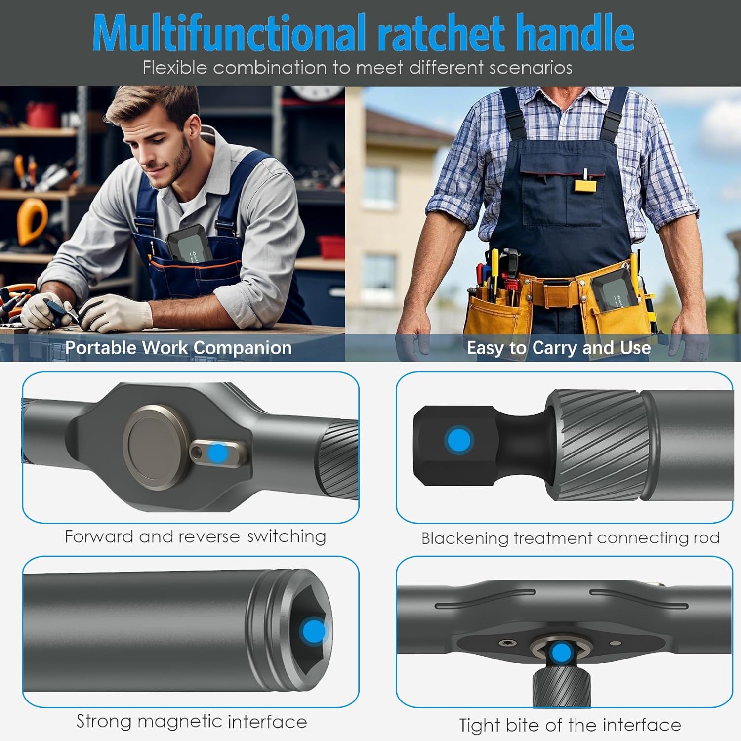【Study Aluminum Alloy Handle】This ratchet screwdriver features a detachable aluminum alloy handle, allowing easy use in tight spaces. The ultra-hard thermally forged aluminum alloy, combined with precision CNC molding, ensures durability and oxidation resistance. With the hardness comparable to common steel but half the weight, it provides a comfortable grip for extended use without fatigue